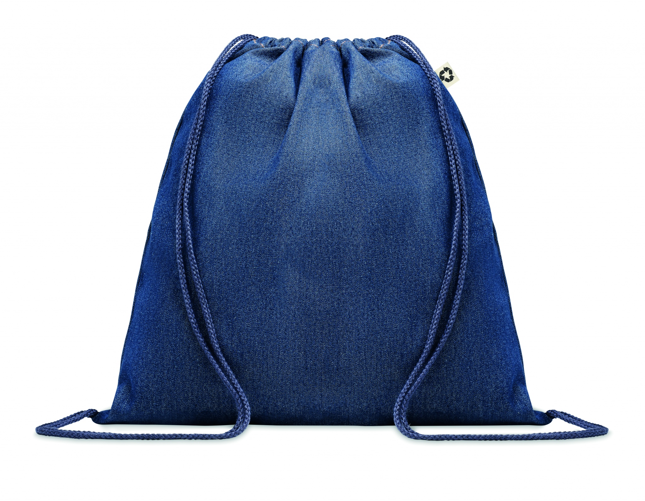 50% Recycled cotton dye denim and 50% cotton drawstring bag. 250 gr/m².