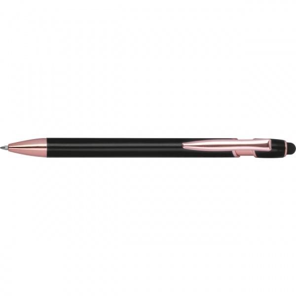 Semi gel pen made from recycled aluminum with touch pen and blue-writing large-capacity refill (1 mm tip). Your logo is applied to the barrel using laser engraving.
