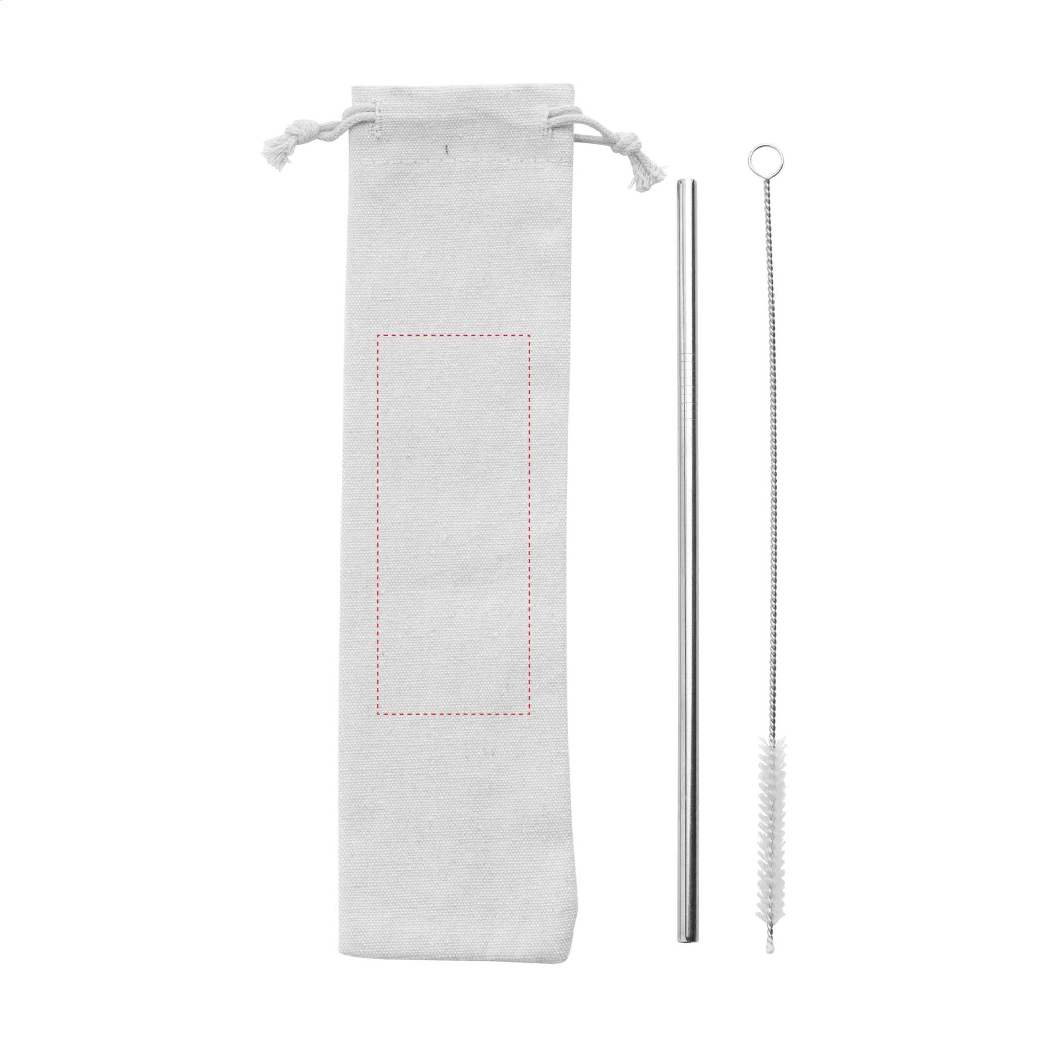 A reusable, stainless steel straw. A good alternative to plastic straws. Includes stainless steel nylon cleaning brush. Perfect for cold drinks such as smoothies or cocktails. It also adds a visually pleasing touch to any drink. Supplied per set with a canvas pouch.