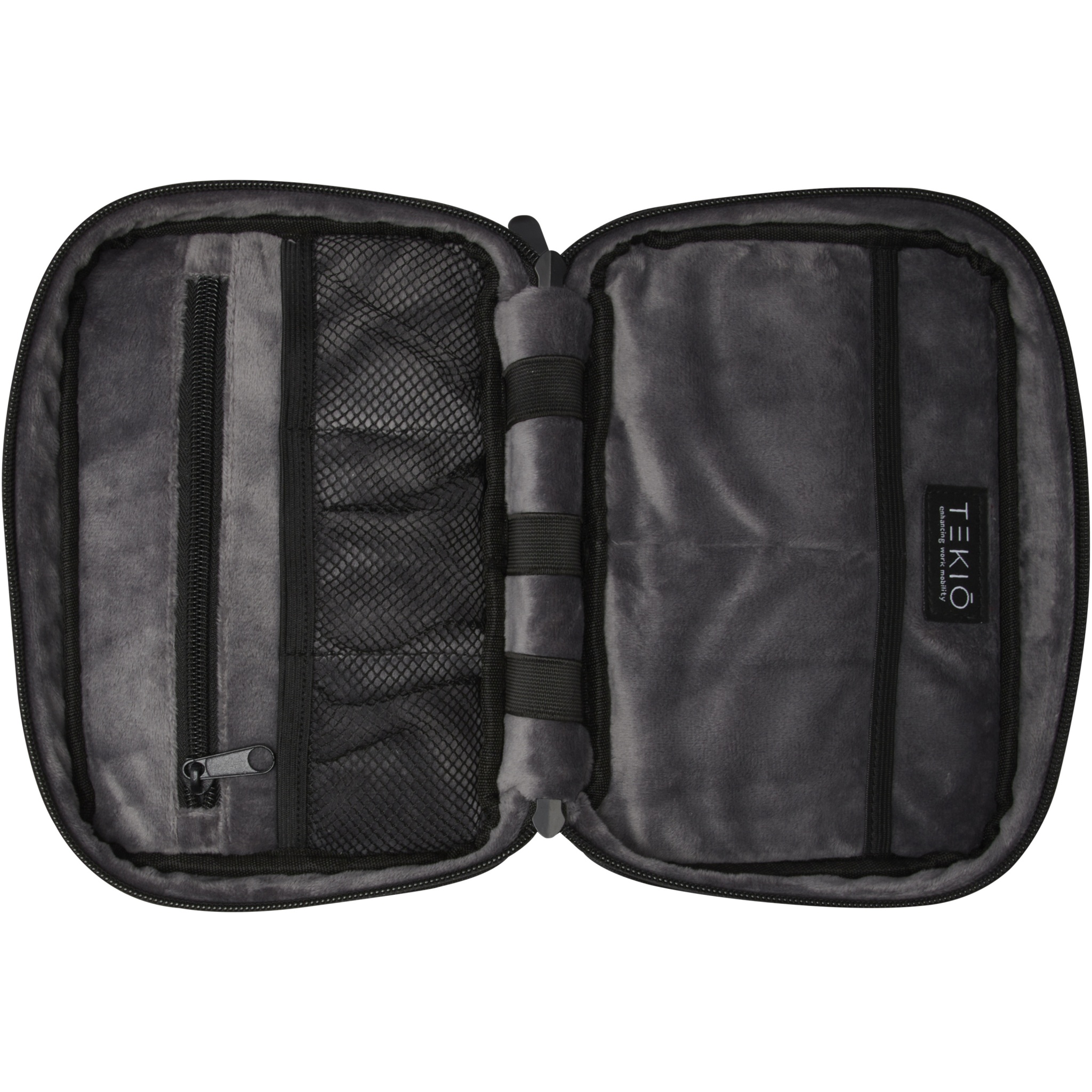 The Rise organiser pouch is a versatile and hybrid solution to organise all tech related items. Made from durable 900D GRS recycled polyester and GRS recycled velvet lining, this hardshell pouch features two sleeve pockets, mesh pockets, elastic straps at the bottom for cables and a zipper pocket for additional accessories. All pockets ensure optimal organisation and the hard shell protects all valuable gadgets.