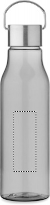 Drinking bottle in RPET which is BPA free and stainless steel cap with lid handle. Leak free. Capacity: 600 ml.