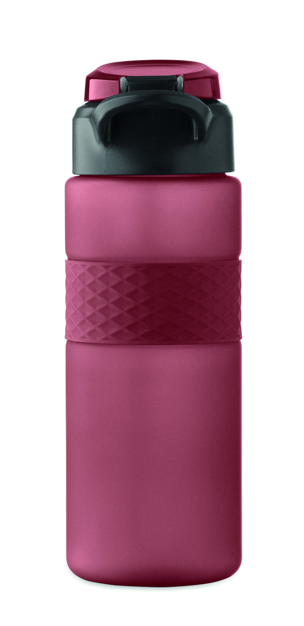 Drinking bottle made from RPET with silicone grip, PP flip-top lid and safety lock. Including integrated straw. Leak-free. Capacity: 700 ml.