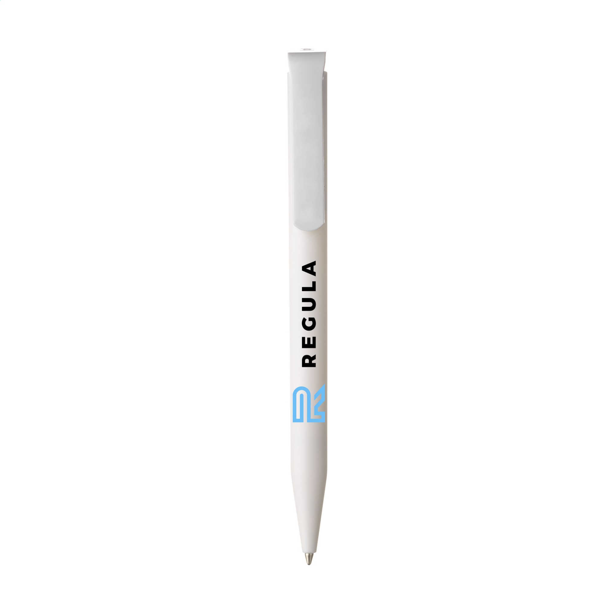 Blue ink ballpoint pen from the brand Senator®. The matt barrel is made of PLA granulate on the basis of sugarcane and is therefore biodegradable. The pen is produced using green energy and processes certified according to the ISO 14001 environmental standard. With a large clip/push button. Made in Germany.
