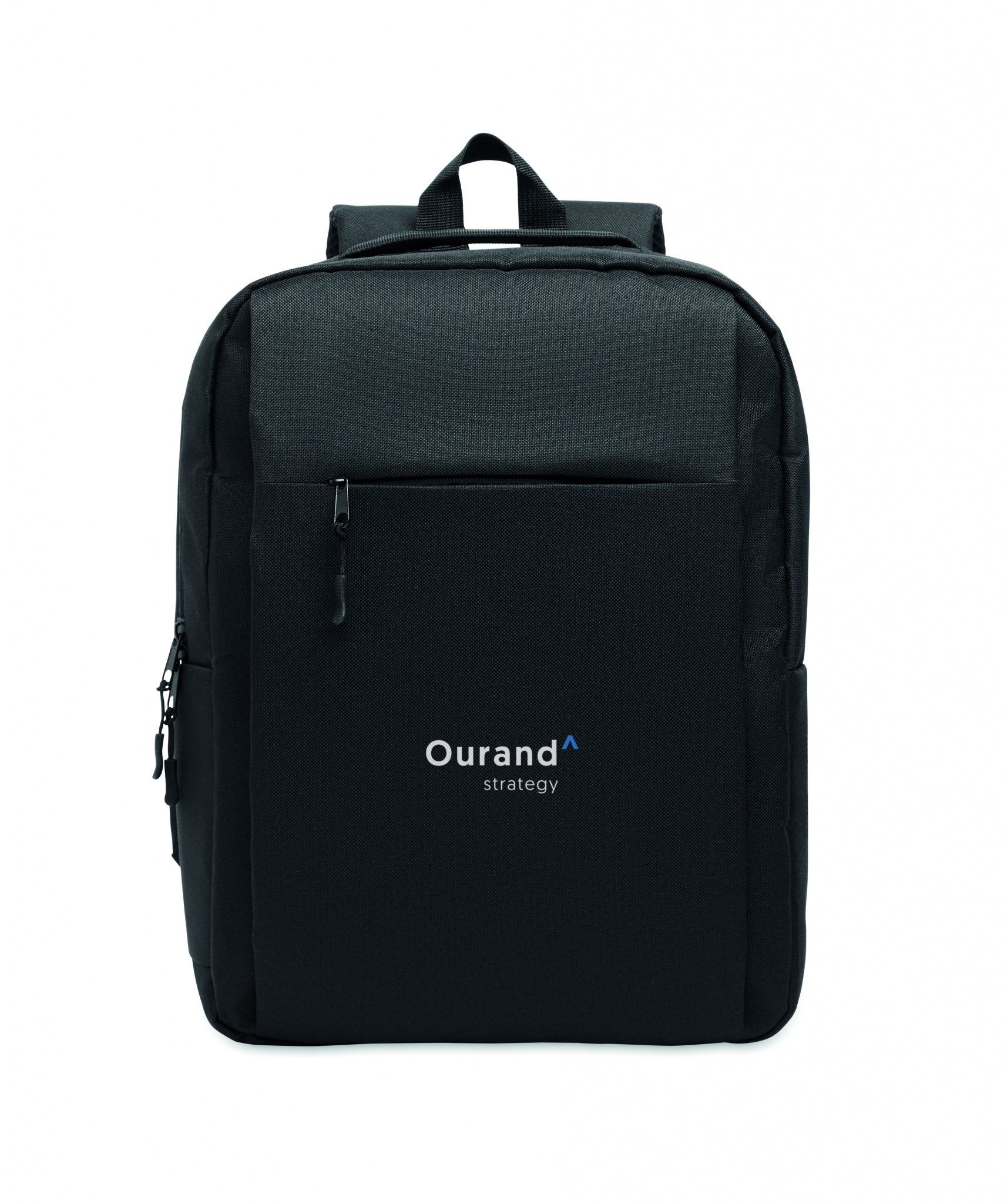 Slim 15 inch laptop backpack made of 600D RPET polyester with a 210D lining and customizable printing, Black