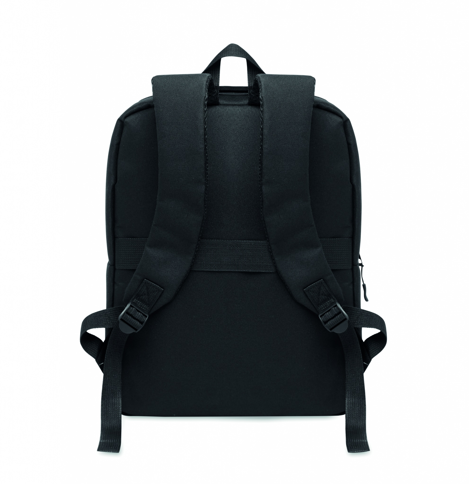 Logotrade promotional giveaway picture of: Slim 15 inch laptop backpack made of 600D RPET polyester with a 210D lining and customizable printing