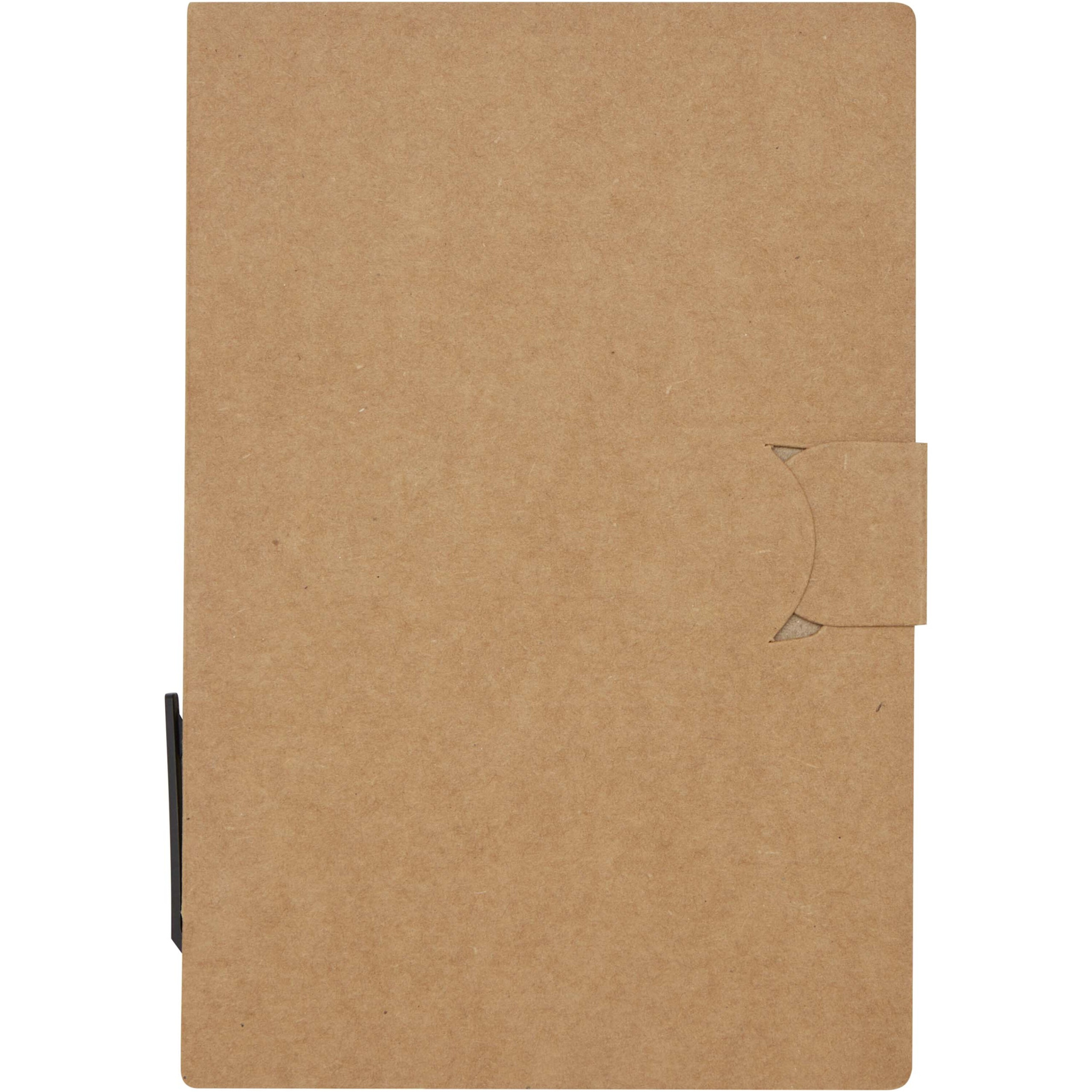 The Swift sticky notes booklet with ballpoint pen is a very handy office essential, with 25 sheets of white 70 g/m2 blank paper (14.1 x 7.8 cm). It also has small (4.5 x 1.2 cm) and big (7.5 x 7.5 cm) coloured sticky notes. The barrel of the ballpoint pen is made of recycled paper. Ink colour: Black. Writing length: 500 metres. Nib size: 1.00 mm.