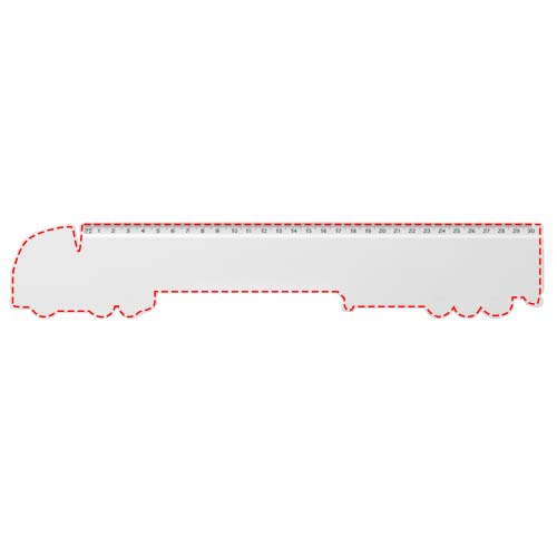 Lorry-shaped solid recycled plastic ruler with markings in inches or centimetres.