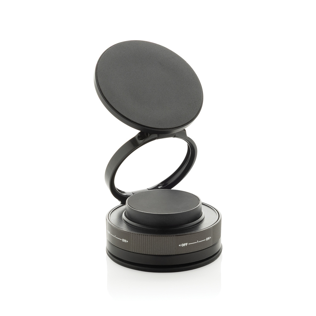 360° Magnetic Universal Phone Holder in RCS Recycled Plastic. This powerful and flexible phone holder is designed to keep your device secure and perfectly positioned—wherever you need it. With full 360-degree rotation, ultra-strong magnetic adhesion, and a suction power of up to 84N, it offers unmatched stability and convenience. Whether on your desk, in the car, kitchen, or bathroom, this universal holder mounts effortlessly, making it ideal for hands-free calls, content viewing, or simply keeping your phone within reach. The sleek design combines function and versatility in any environment. Made out of RCS certified recycled materials, including recycled PC, ABS, and TPU. RCS (Recycled Claim Standard) is a standard to verify the recycled content of a product throughout the whole supply chain. Total recycled content: 57% based on total item weight. PVC-free and packed in FSC® packaging.