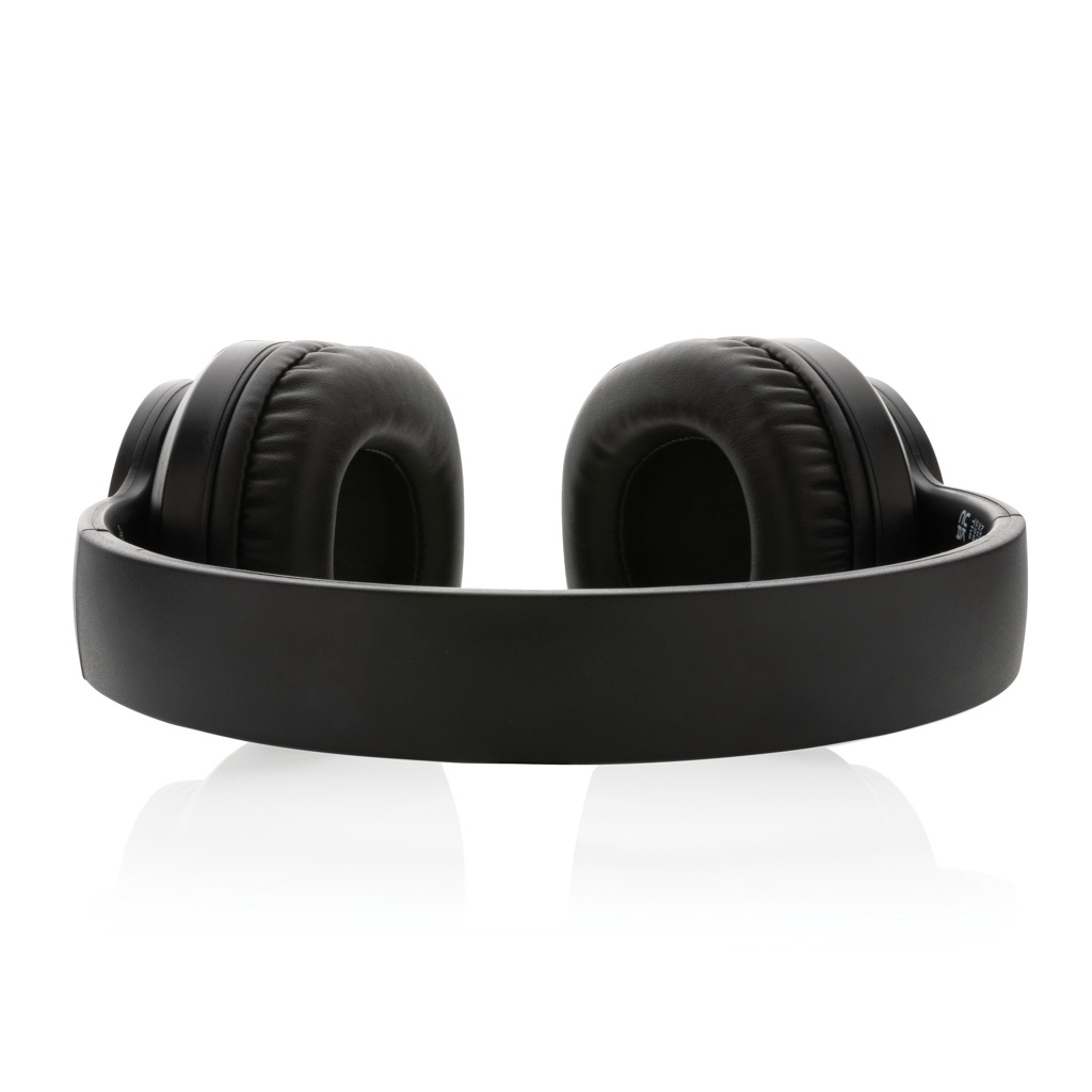 Foldable wireless headphone and strong bass. Made with RCS (Recycled Claim Standard) certified recycled aluminium and ABS. Total recycled content: 70% based on total item weight. RCS certification ensures a completely certified supply chain of the recycled materials. Aluminium does not lose its characteristics in the recycling process and can be recycled endlessly. Including recycled type C charging cable made from RCS certified recycled aluminum, TPE and PET. The 600 mah battery allows a playtime up to 15 hours and can be fully re-charged in 2 hours. With BT 5.3 for smooth connection up to 10 metres. Packed in FSC® mix packaging. Item and accessories 100% PVC free. With MIC to answer calls.