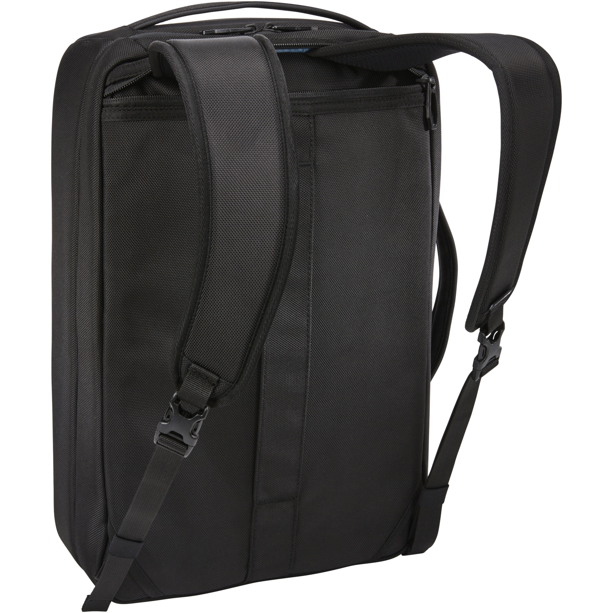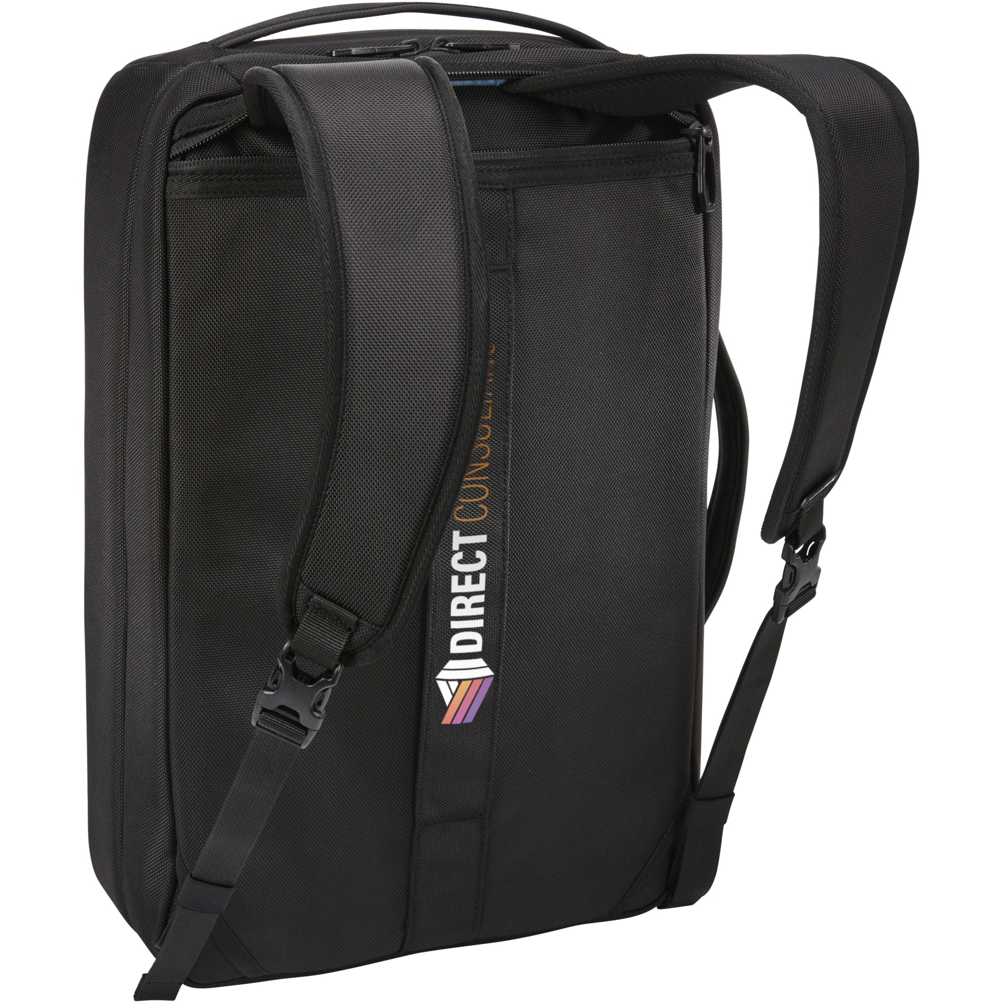 A 2-in-1 eco-friendly briefcase that converts into a backpack for easier business travel. Features dedicated pockets for a 16" MacBook® or 15.6" PC, and a 10.5" tablet. Multiple internal organization pockets to secure contents in briefcase or backpack mode, and a removable, padded shoulder strap to carry comfortably in briefcase mode. Produced with 100% GRS certified recycled 1680 polyester material with YKK zippers.