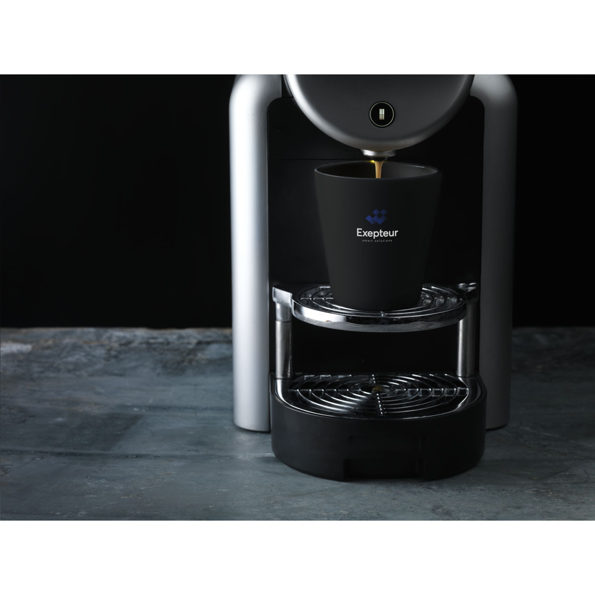 Trendy mug without handle. Made of high-quality ceramics. With matt outside and high-gloss inside. Suitable for all coffee machines. Capacity 190 ml. Dishwasher-safe. The imprint is tested and certified dishwasher-safe: EN 12875-2.