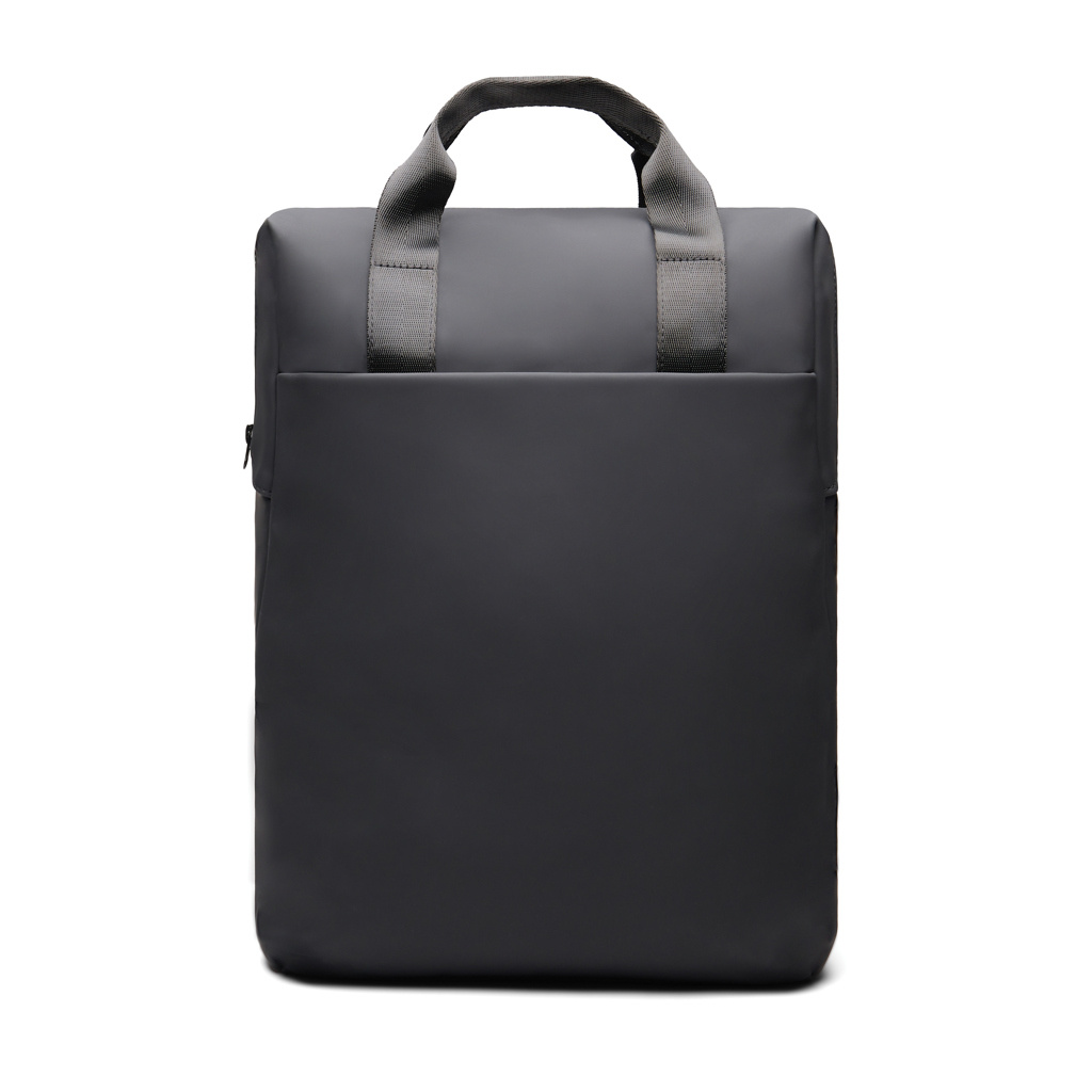 An easy-to-handle bag with a sleek design. Carry it as a tote bag or a backpack. The bag features a wide zippered opening for convenient packing of your laptop and other valuables. A strap on the back allows it to be attached to a trolley for smooth travel. It also includes a large front pocket, an inner pocket, and a practical bottle holder. Certified by RCS (Recycled Claim Standard), RCS certification guarantees that the entire supply chain of recycled materials is certified. The total recycled content is based on the overall product weight. This product contains 19% RCS certified recycled polyester.