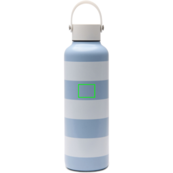 This 600 ml double walled vacuum bottle is crafted from RCS certified recycled stainless steel. Featuring a classic two-coloured striped pattern together with a sleek white silicone handle. The double walled insulation maintains drink temperatures cold for up to 12 hours, and hot for up to 6 hours, whether you need to stay cool with a chilled drink or enjoy a warm beverage on the go. Not dishwasher or microwave safe, only handwash. Certified by RCS (Recycled Claim Standard), RCS certification guarantees that the entire supply chain of recycled materials is certified. The total recycled content is based on the overall product weight. This product contains 80% RCS certified recycled stainless steel.