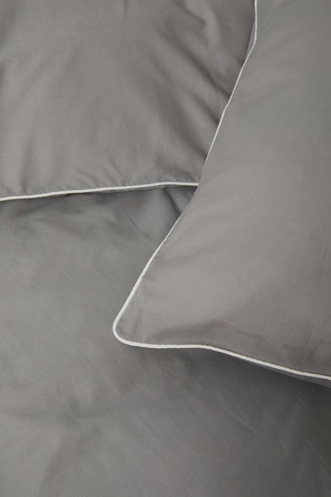 This elegant set features a solid colour design with piping detail in contrasting colour along the edges, adding a touch of sophistication to your bedding ensemble. Complete with two pillowcases (50x60 cm) and two duvet covers (150x210 cm), it ensures a coordinated and chic look for your bed. The Organic Content Standard (OCS) verifies organically grown material and tracks it from source to final product. This product contains 98% OCS certified organic cotton.