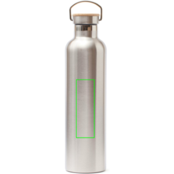 Miles thermobottle has a smart vaccum isolation to keep water ice cold for up to 18 hours and hot for 6 hours. The bottle is produced in 18/8 steel and the lid has a hanger and wood decoration. It contributes in preventing single use plastics. 1L content.