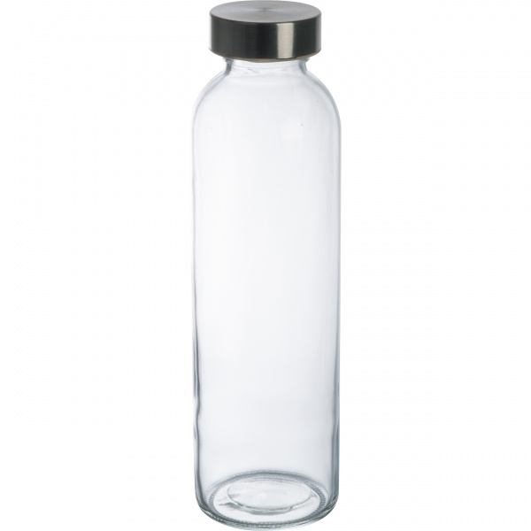 Glass drinking bottle with a capacity of 600 ml and a stainless steel lid. The bottle is suitable for carbonated beverages. We place your logo on the bottle. Engraving on the lid available upon request.