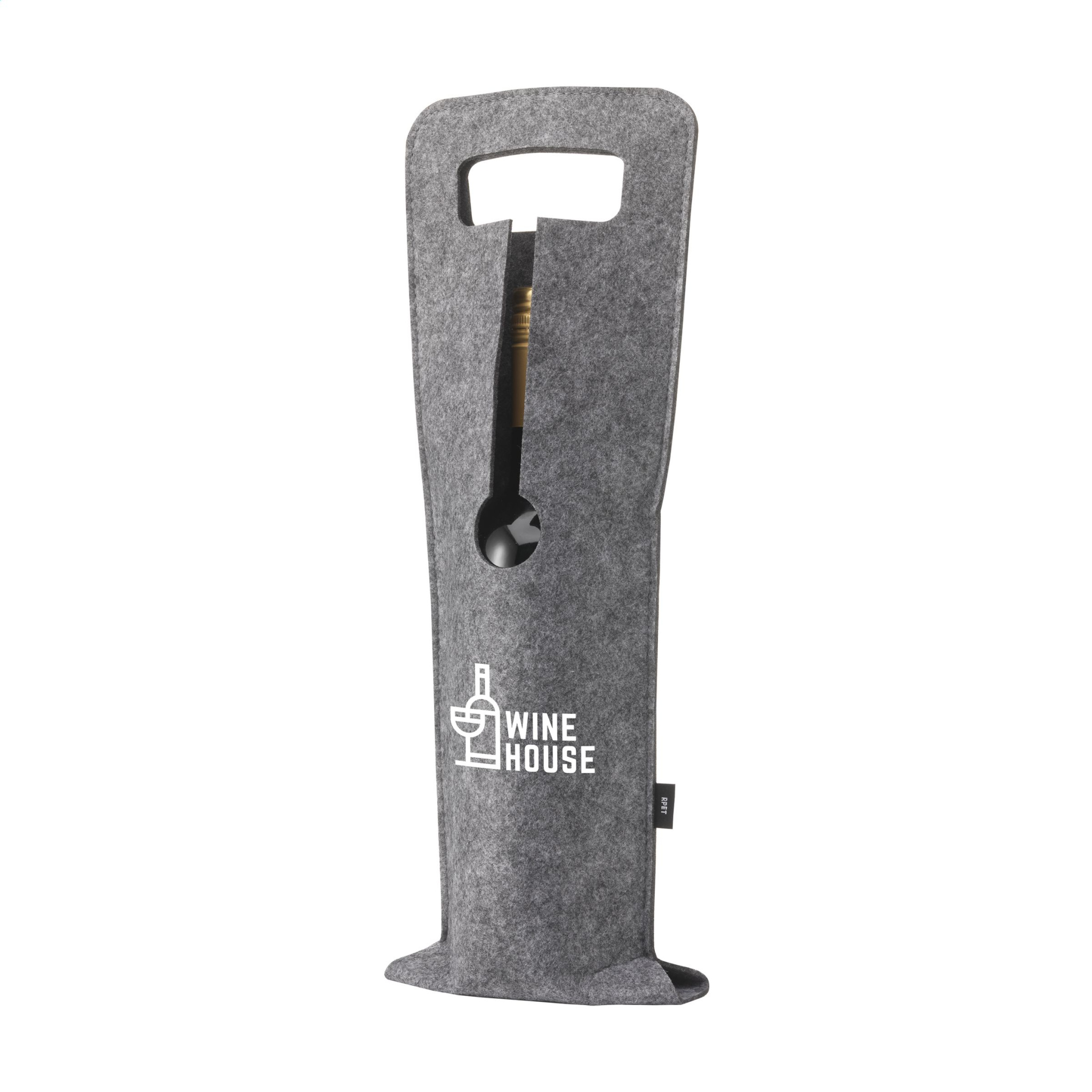 WoW! Fasionable RPET wine bottle holder. Made from recycled PET bottles. This product is designed to hold one bottle of wine (not included). GRS-certified. Total recycled material: 95%.