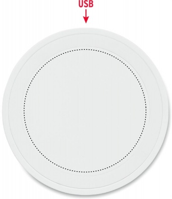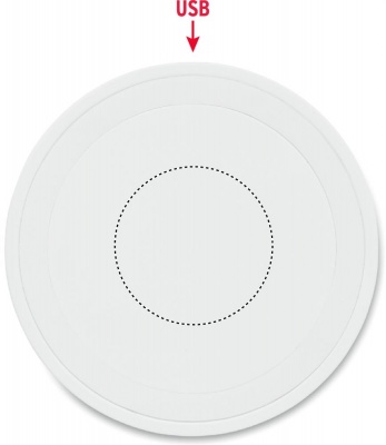Set with wireless charger in ABS. Presented in EVA/ PU pouch. Contains EU plug and charging cable USB A to Micro B. Output data: DC9V/1.66A (15W).