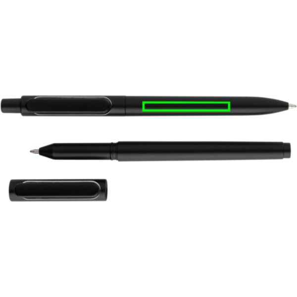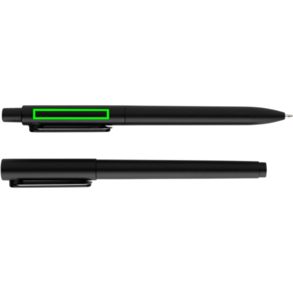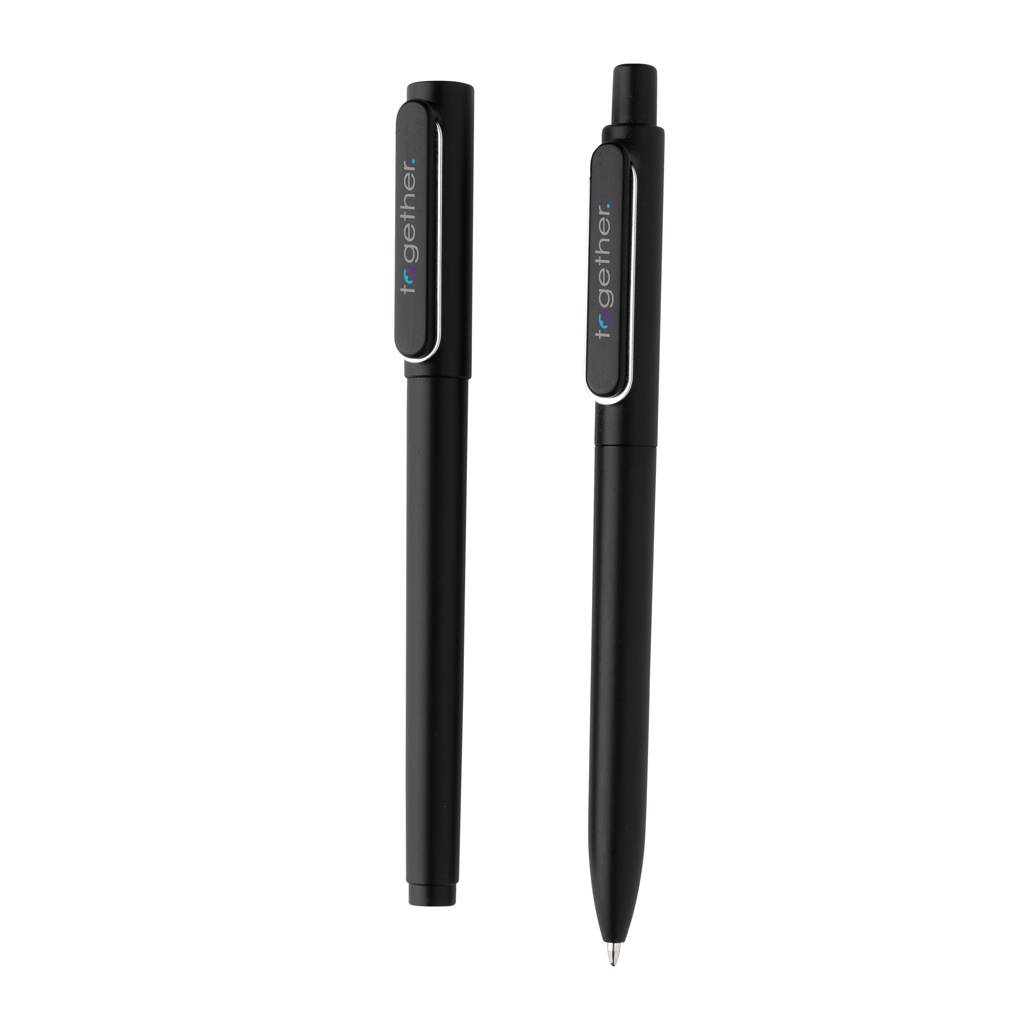 This X6 pen set features an unique metallic finish with stunning metal clip design. This set features the X6 pen next to his new brother the X6 cap pen. The X6 pen holds ca. 1200m writing length with German Dokumental® blue ink refill with TC-ball for ultra smooth writing. The X6 cap pen contains a low viscosity ink which provides even more writing smoothness. The low viscosity ink ensures more ink flow than higher viscosity inks for fluid luxurious strokes. Writing length 800 metres. Writing colour blue. Packed in a colour matching gift box.