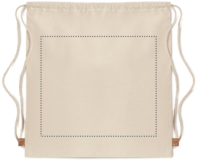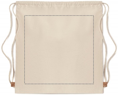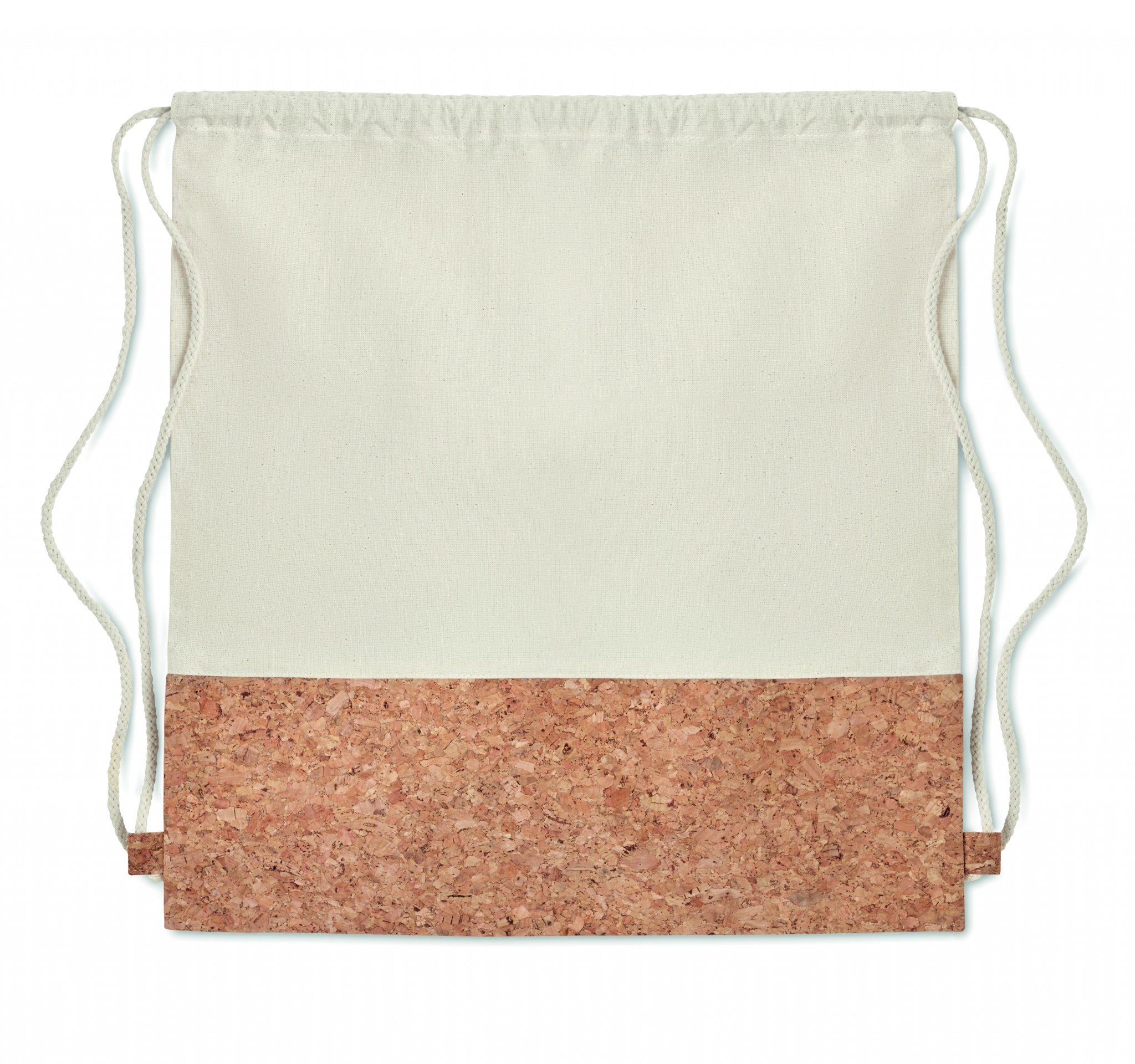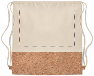 Toimsest puuvillasest nööriga kott korgist detailiga. 160 gr/m². Kork on looduslik materjal, mille struktuurse iseloomu ja pinna poorsuse tõttu võib lõpptulemuses eseme kohta esineda kõrvalekaldeid.
