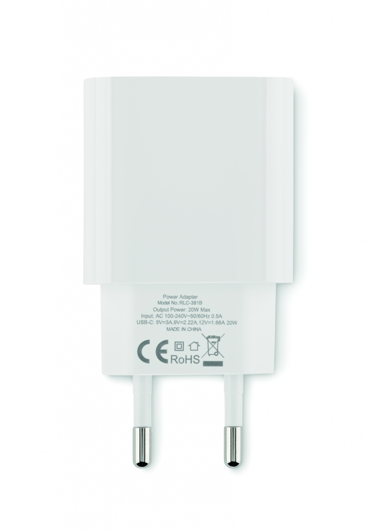Logotrade reklaamtoote foto: 20W 2-pordiline USB-laadija EU pistik