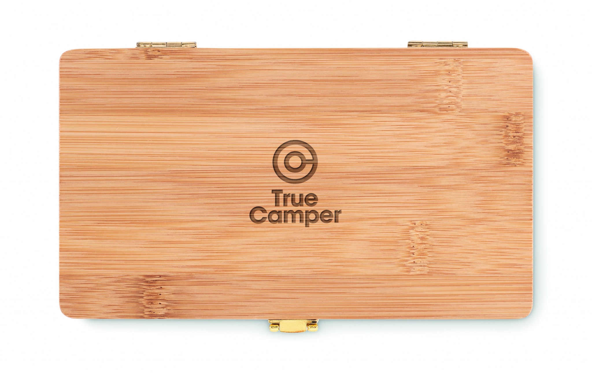 Logotrade ärikingi foto: 21 tk tööriistakomplekt bambusest kohvris