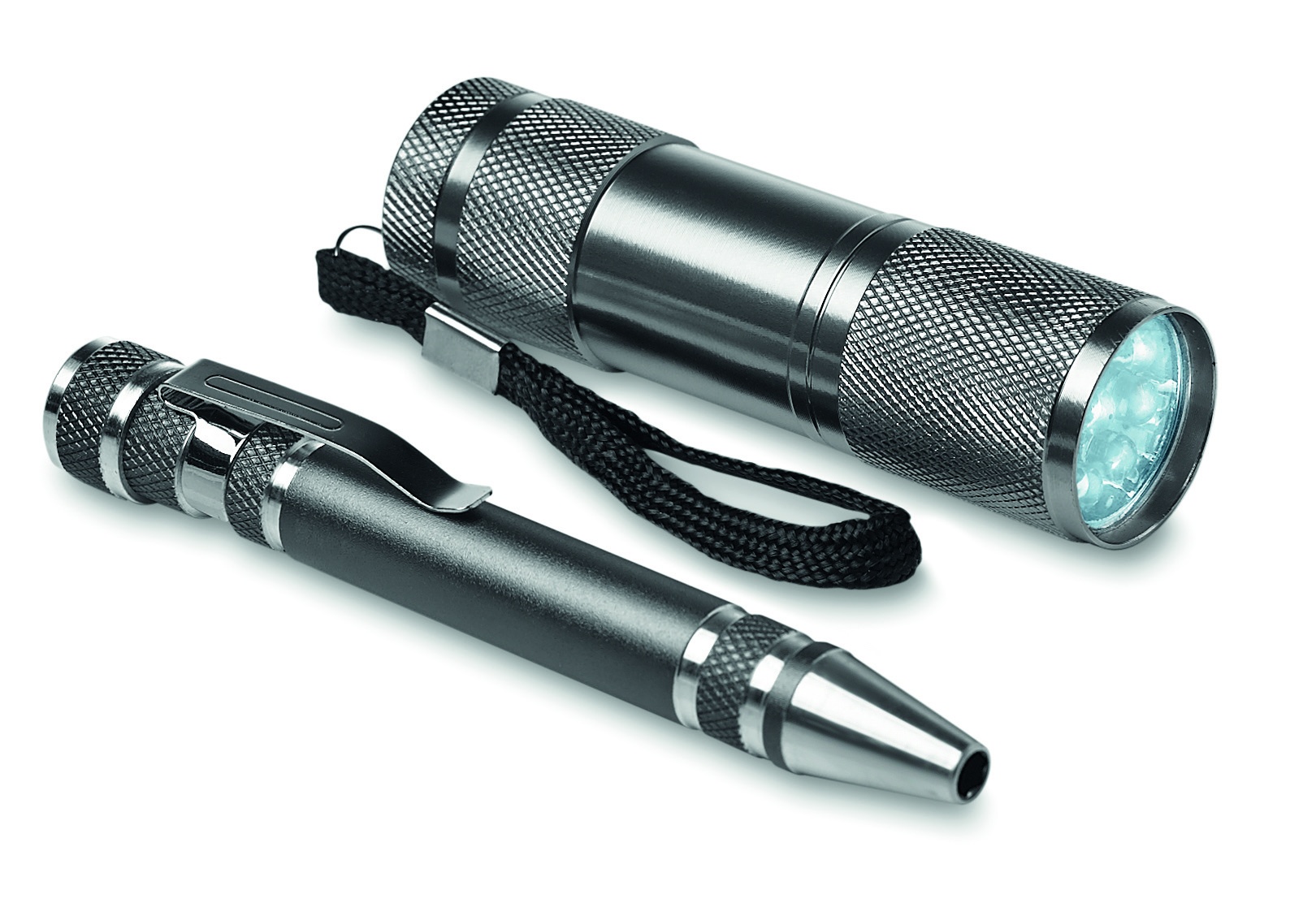 Tööriistakomplekt 9 LED-alumiiniumist taskulampi ja pliiatsikujulise alumiiniumist mitme tööriistaga. Kaasas 3 piluga ja 3 Phillipsi kruvikeeraja pead. 3 AAA patareid ei sisalda. Esitatakse karbis.