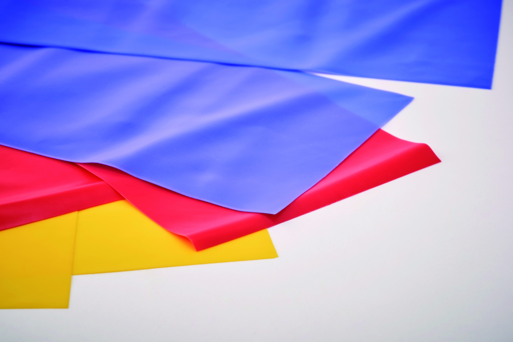 3 TPE-treeningrihma komplekt RPET polüestrist kotis. Kõigil fitnessrihmadel on optimaalseks treenimiseks erinev tugevus.
