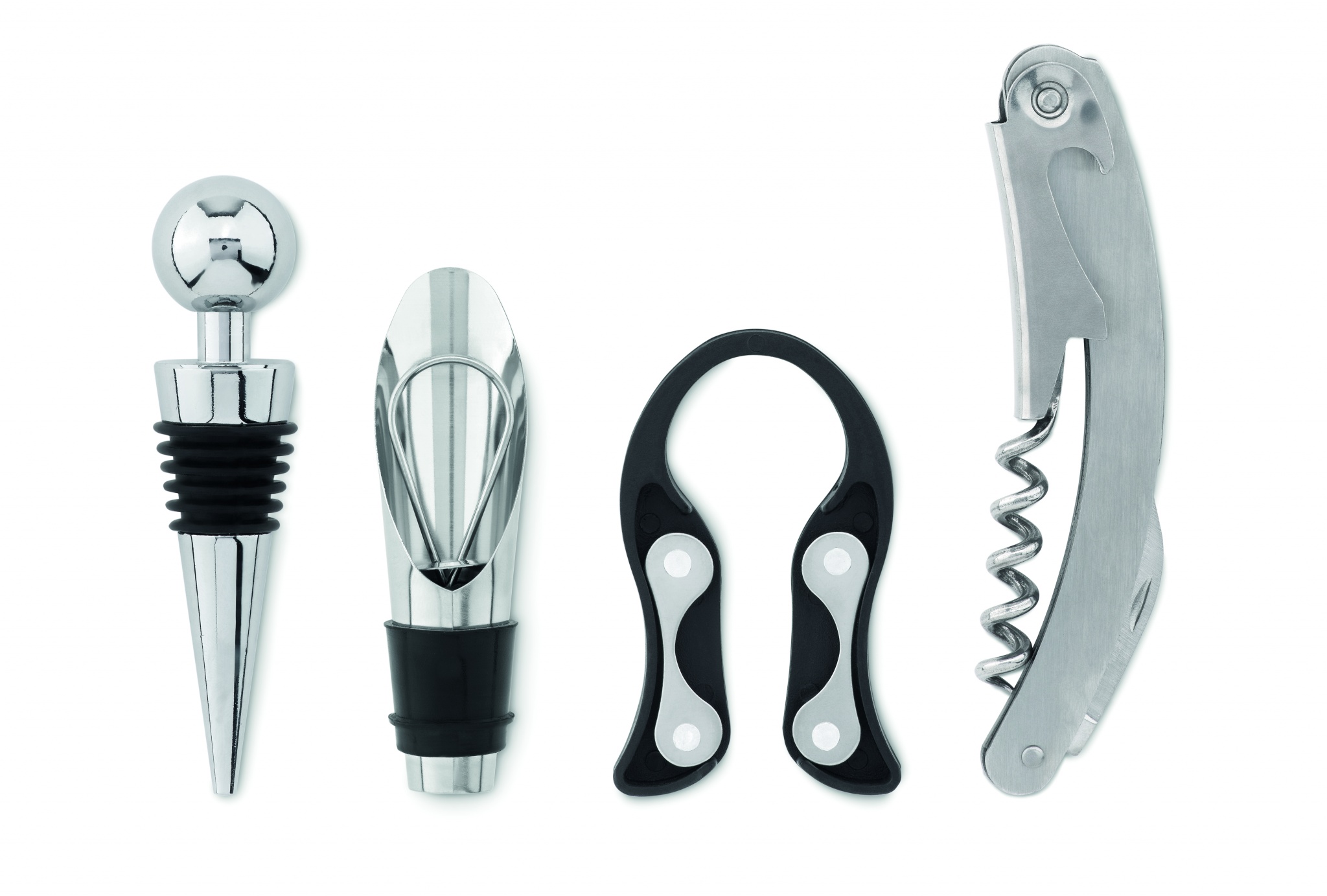 Logotrade reklaamkingitused pilt: 4-osaline veinikomplekt puidust alusel