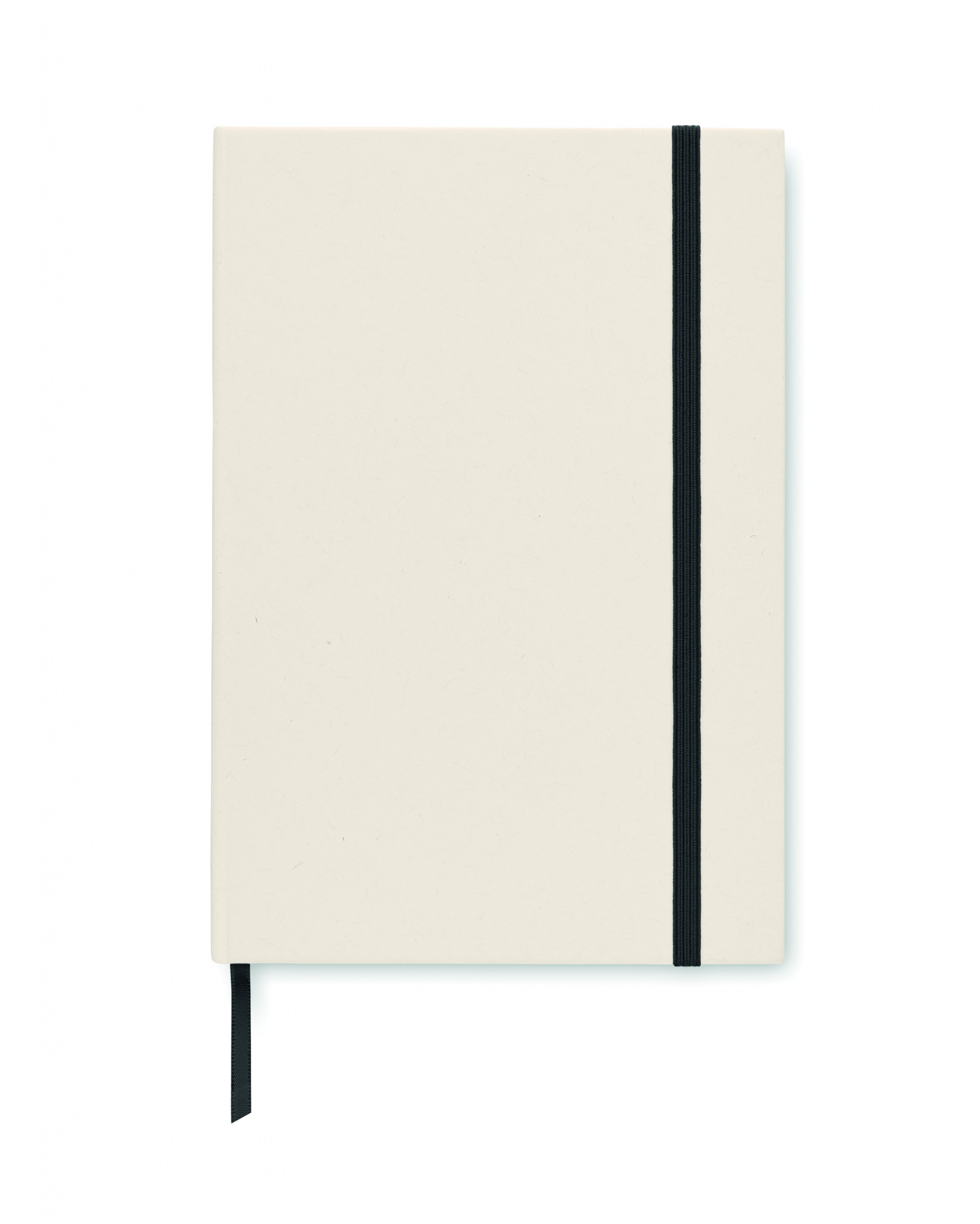 70% taaskasutatud piimakarbipakist ja 30% taaskasutatud paberist kõvakaanega A5 märkmik. Casebound. 160 joonitud lehte (80 lehte 80 gsm), valmistatud taaskasutatud paberist. Elastne sulgemisrihm, lindiga järjehoidja.