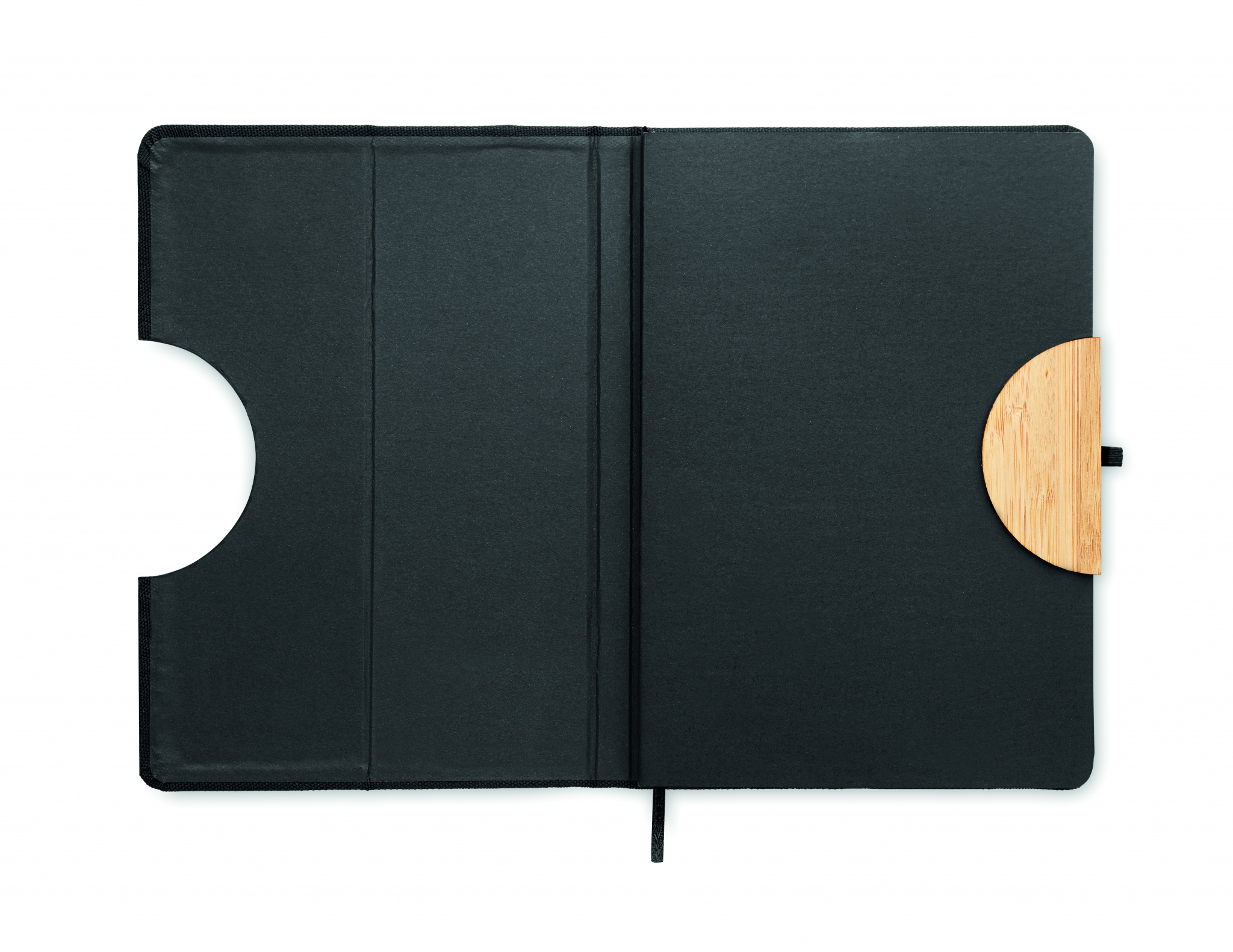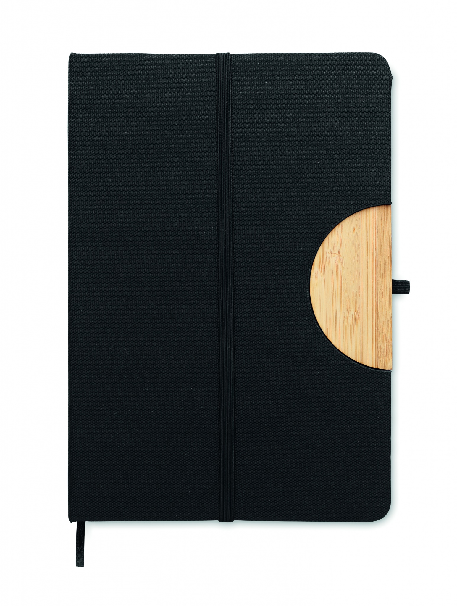 A5 sülearvuti 600D RPET kõvakaanega, bambusdetailidega nutitelefoni aluse funktsiooniga. Casebound. 160 joonelist lehte (80 lehte). 70 gsm taaskasutatud paber. Sobiv elastne sulgemisrihm, lindiga lehemarker ja pliiatsihoidja. Bambus on looduslik toode, ühe eseme värvis ja suuruses võib esineda väikesi erinevusi, mis võivad mõjutada lõppviimistlust.