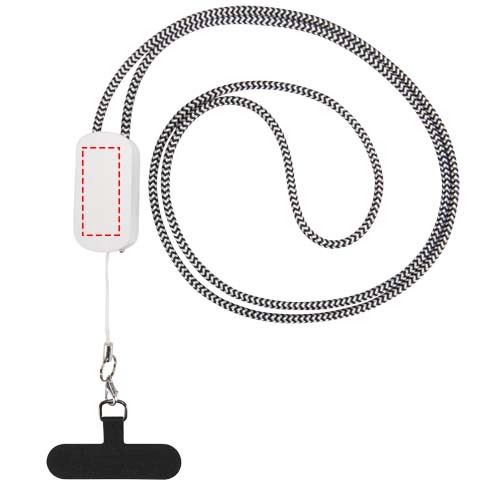 Telefoni kaelapael on valmistatud taaskasutatud materjalidest ning sisaldab sisseehitatud 27W 5-in-1 laadimiskaablit USB-A ja Type-C sisendi ning Type-C ja Lightning väljundiga. Läbipaistev sisetükk hoiab telefoni ümbrises kindlalt, ühendades käed-vabad mugavuse ja kiire laadimise ühes praktilises lisatarvikus.