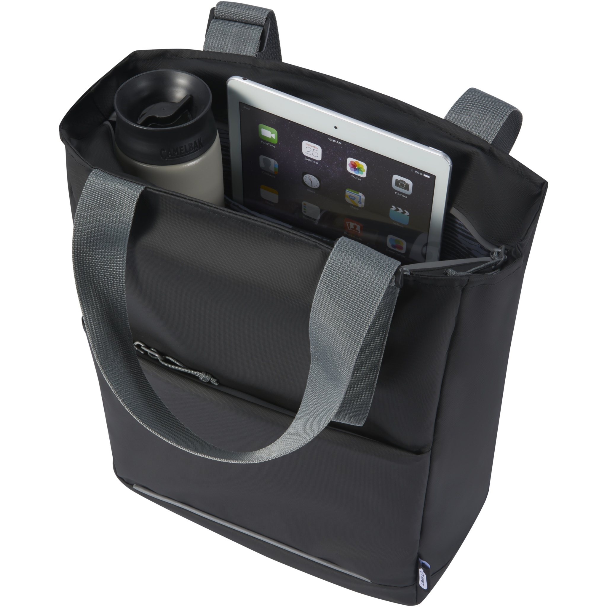 Veekindel sülearvuti kandekott, mis on valmistatud GRS-i taaskasutatud materjalidest, sealhulgas tõmblukud. Sellel on spetsiaalne tahvelarvuti ümbris, 14-tolline sülearvuti sahtel, mitu taskut organiseerimiseks, esitasku koos organiseerimispaneeliga, reguleeritavad 35 cm pikkused käepidemed ja pagasirihm. GRS-i taaskasutatud materjalide hulka kuuluvad põhikangas, vooder, vöö ja tõmblukud. Mahutavus: 14 liitrit. PVC vaba.