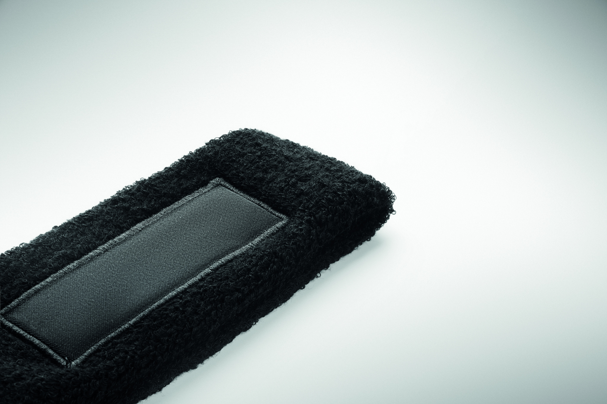 Must polüpuuvillast (79%puuvill/13% elastaan/8%polüester) peapael puuvillase embleemiga trüki jaoks.