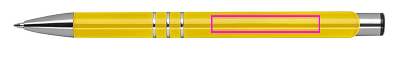 Täielikult lakitud metallist pastapliiats 3 dekoratiivrõnga ja suure mahutavusega sinise kirjaga täidisega. Teie logo graveeritakse klipist paremale.