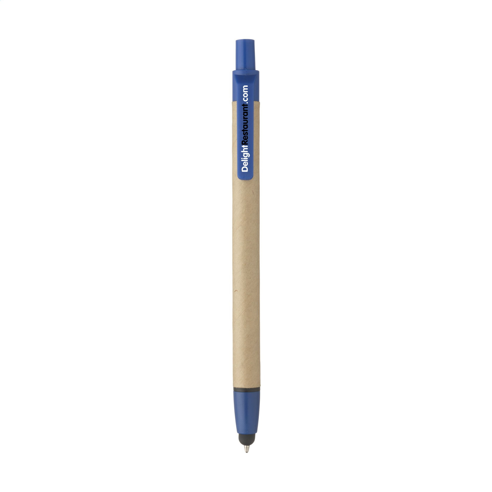 Vau! Sinise tindiga pastapliiats toruga, valmistatud taaskasutatud papist, kummist osuti puuteekraanide ja plastikust aktsentidega kasutamiseks.