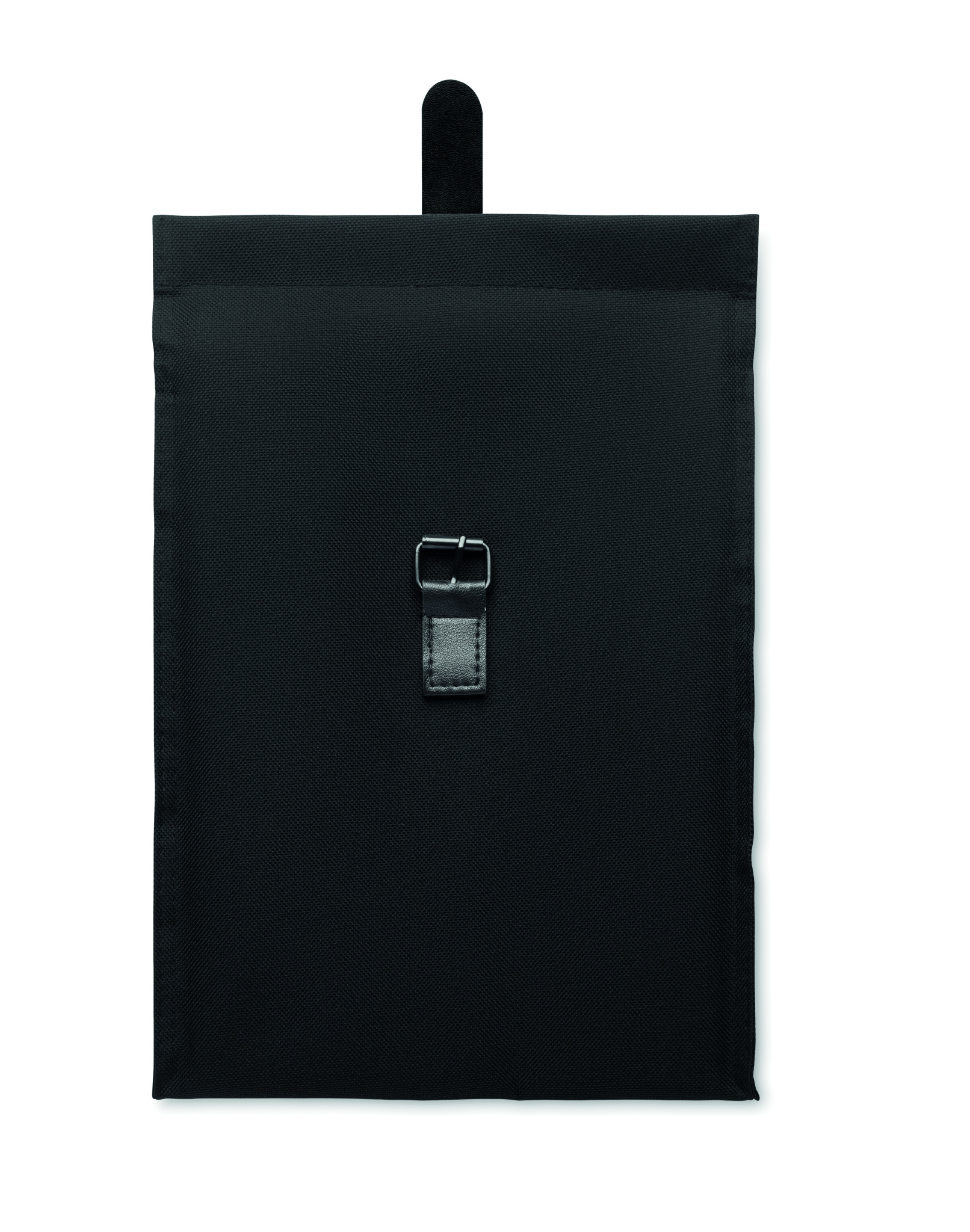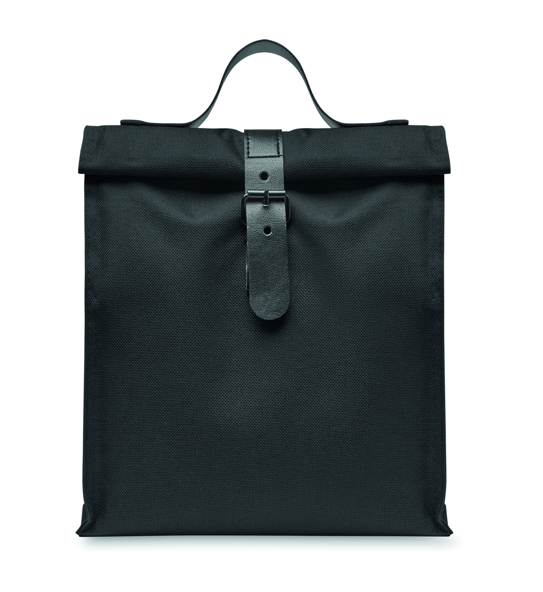 Must 600D RPET polüestrist isoleeritud rullitav lõunakott PU käepideme ja sulguriga. Isolatsioon: 3mm PE vaht PEVA-ga.
