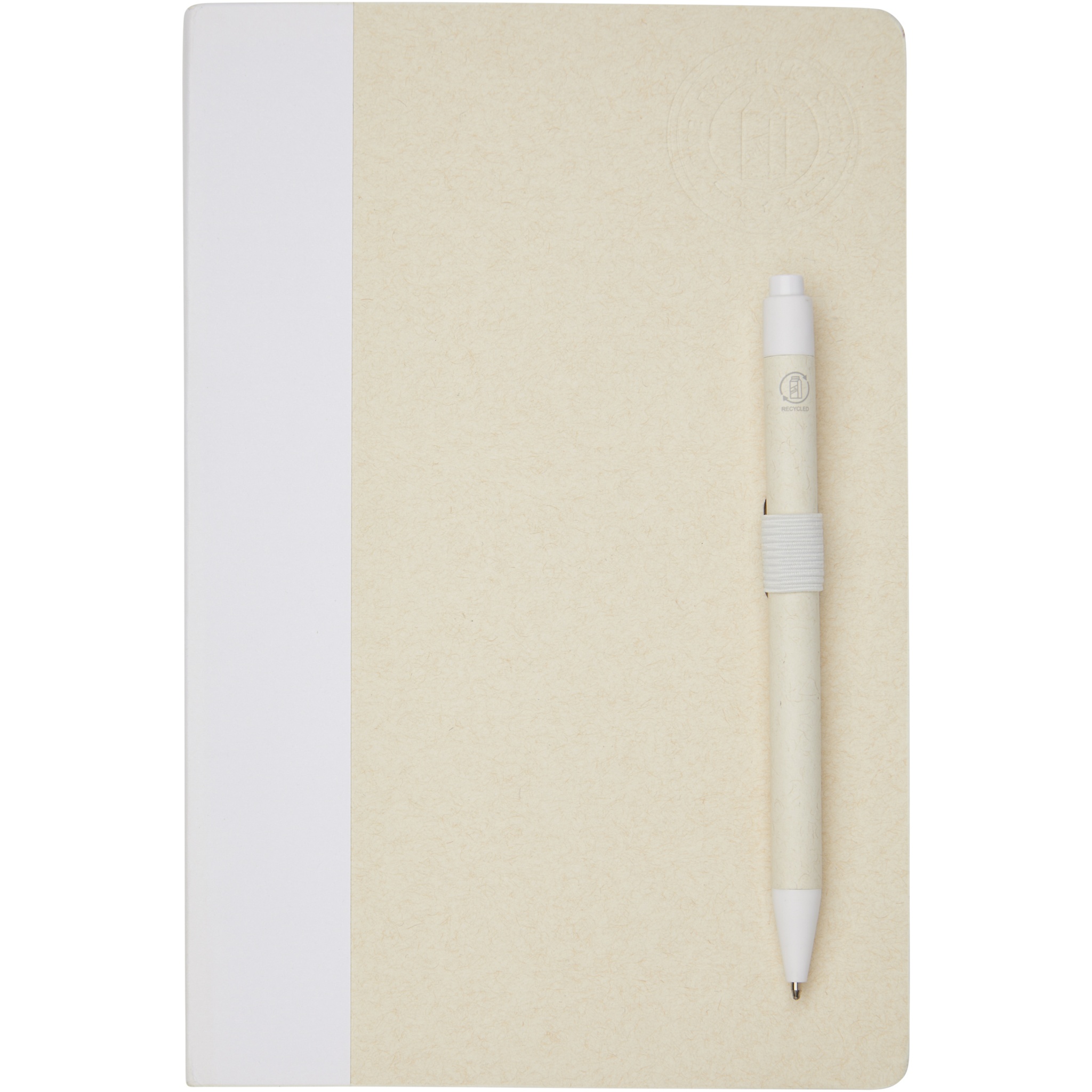 Dairy Dream A5 mõõdus referentsi taaskasutatud piimapakkidest märkmik ja pastapliiatsi komplekt, Valge
