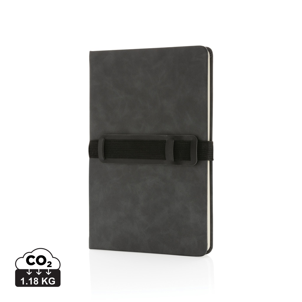 Deluxe kõvakaaneline PU-märkmik A5 telefoni ja pliiatsihoidjaga, hall