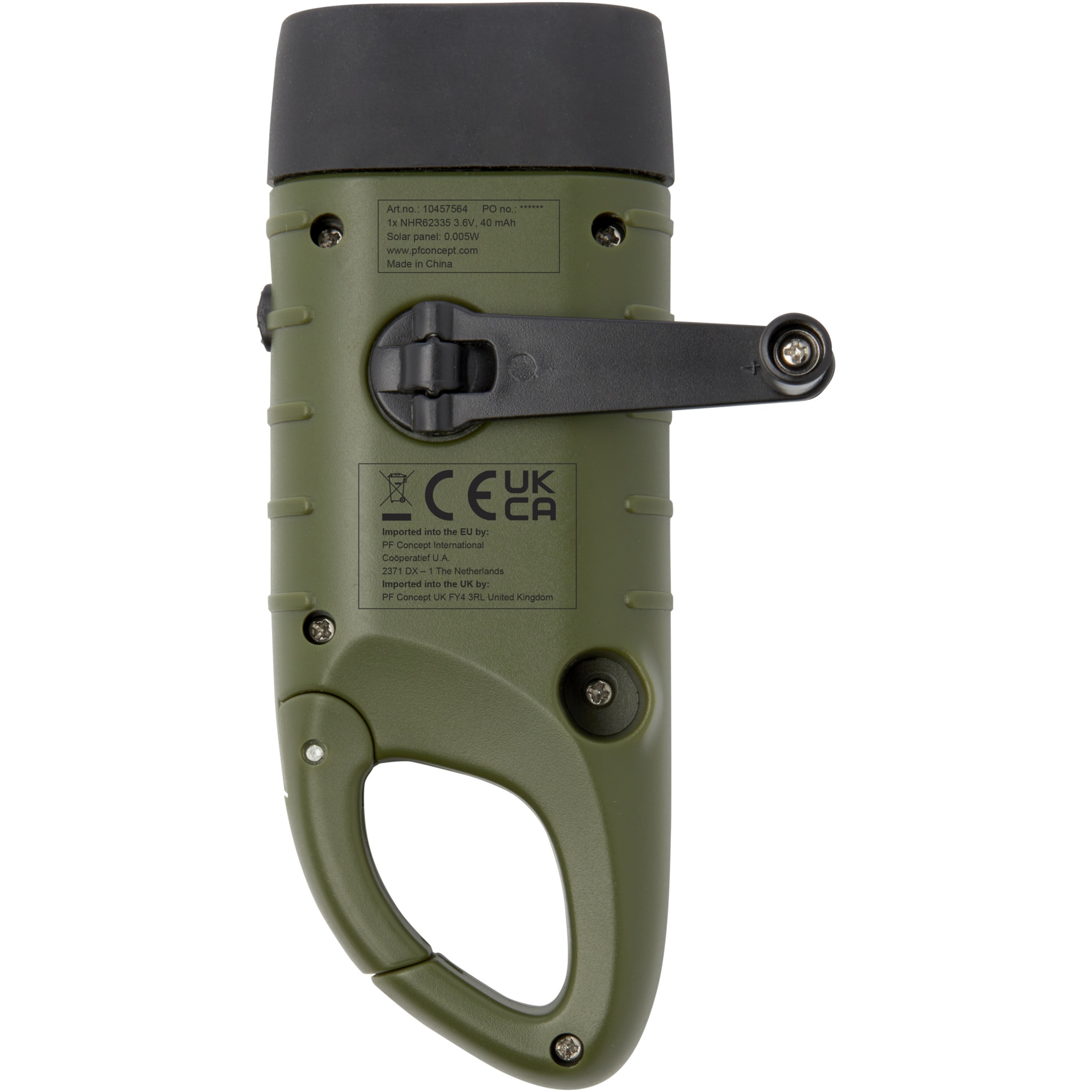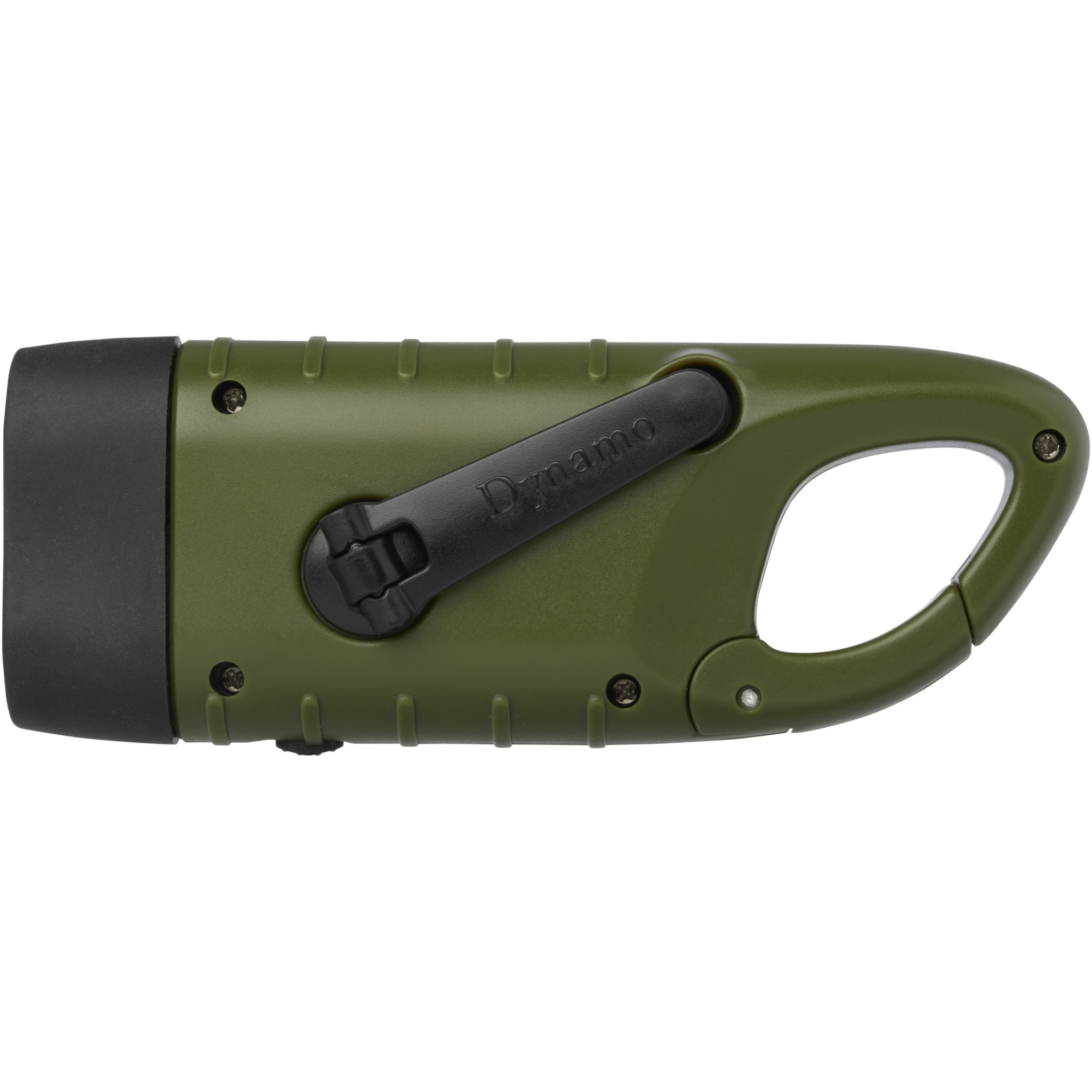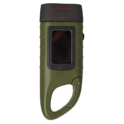 Helios taaskasutatud plastikust päikesedünamo taskulamp karabiiniga, Armee roheline