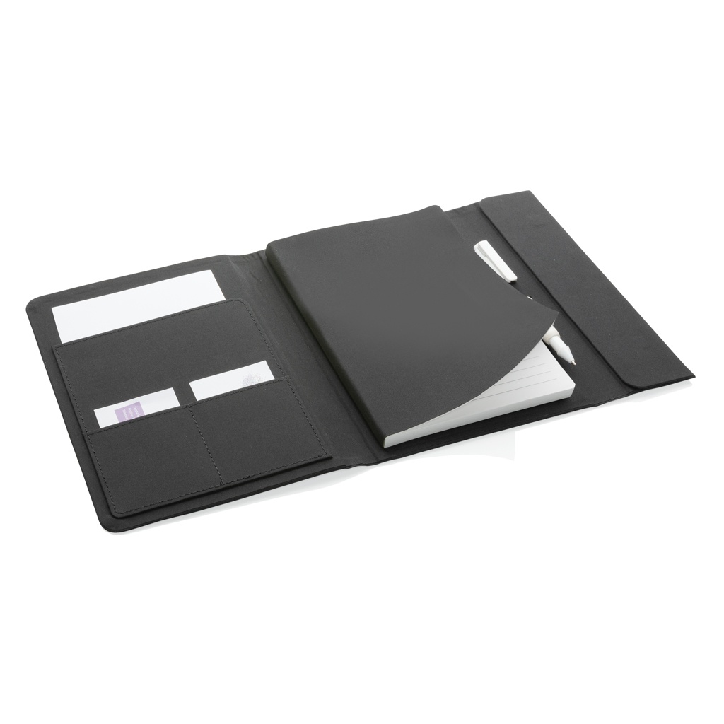 Hoidke kõik oma tööks vajalikud asjad korras selles kaunis A5 Aware™ RPET-portfellis. Portfoolio seest leiate sobiva märkmiku. Märkmik sisaldab 64 lehte/128 lehte kreemjavärvilise joonega 80gm/s paberit. Seest leiate 1 suure varrukatasku, 2 kaardipesa ja pliiatsi aasa. Magnetiline sulgur. AWARE™ märgistusega, mis kinnitab taaskasutatud materjalide ehtsat kasutamist. Igas portfellis on taaskasutatud 6,5 0,5L PET-pudelit. 2% iga müüdud Impacti toote tulust annetatakse veebisaidile Water.org. PVC vaba.