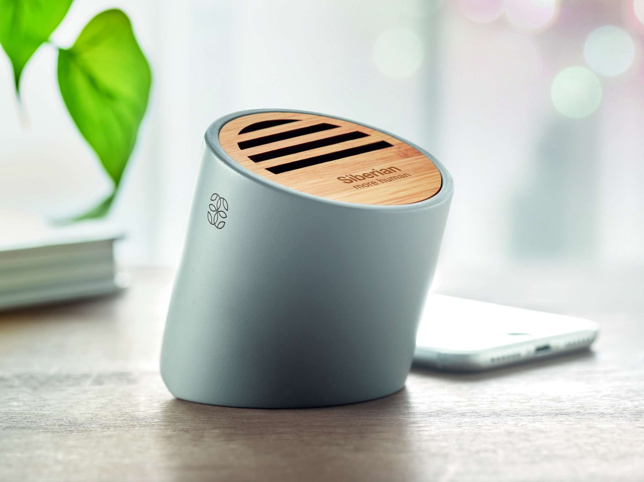 Lubjakivist tsemendist ja bambusest juhtmevaba 5.0 kõlar koos laetava 450 mAh Li-on akuga. Väljundandmed: 3W, 4 Ohm ja 5V. Mikro USB kaabel kaasas. Mänguaeg ca. 3h. Bambus on looduslik toode, ühe eseme värvis ja suuruses võib esineda väikesi erinevusi, mis võivad mõjutada lõppviimistlust.