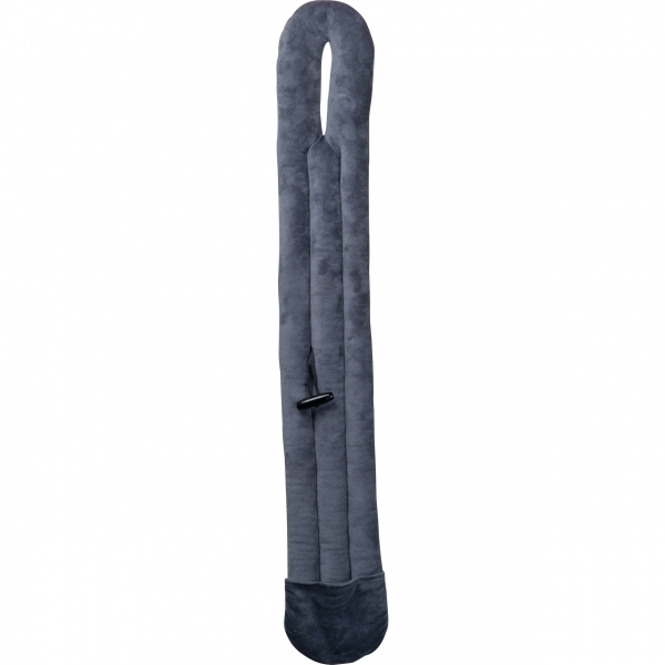 Mugav kaelapadi veluursametist. Kinnitusrihm võimaldab padja kokkurullimisel hõlpsalt kinnitada.
