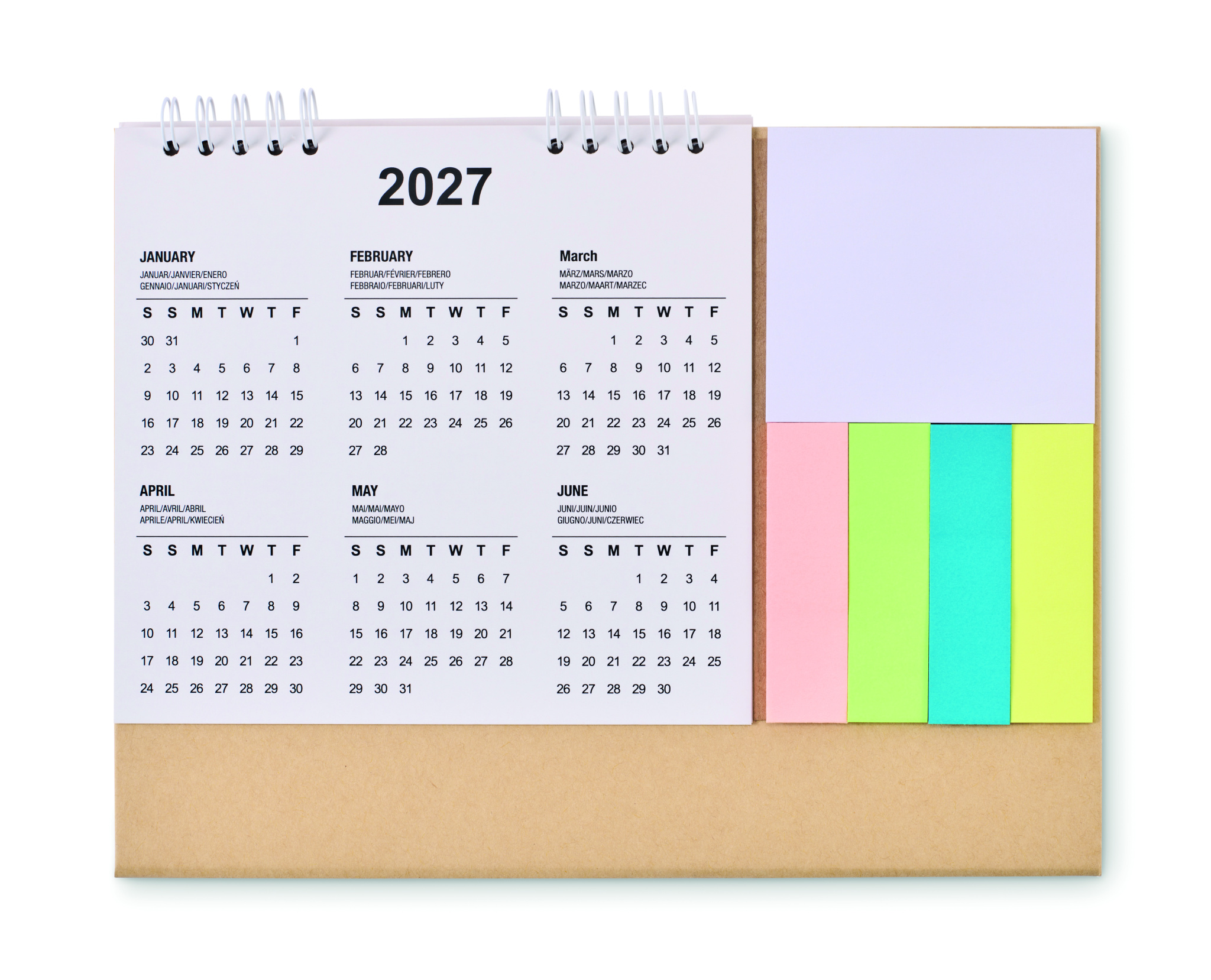 Lauakalender (4 aastat) kleepmärkmete ja märkmeplokiga papist alusel. FSC®-sertifitseeritud | FSC MIX, P8.6, FSC-C213206