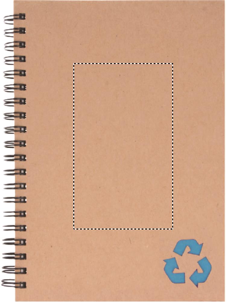 Taaskasutatud kartongist kaanega märkmik. Kahejuhtmeline. 140 joonega mineraalpaberilehte (70 lehte). Mineraalpaber on valmistatud kaltsiumkarbonaadist ja HDPE-st (polüetüleenvaigust), mida kasutatakse sideainena. See on veekindel ja rasvakindel.
