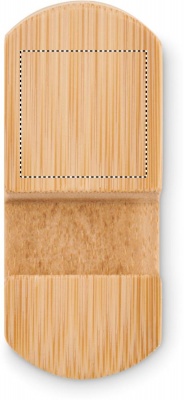 Mini nutitelefoni alus bambusest. Bambus on looduslik toode, ühe eseme värvis ja suuruses võib esineda väikesi erinevusi, mis võivad mõjutada lõppviimistlust.