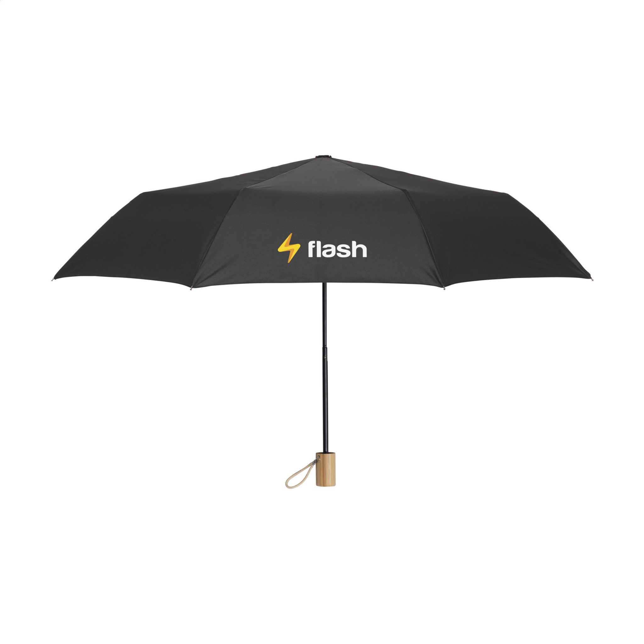 Vau! Kokkupandav vihmavari, mis on valmistatud 190T RPET pongee polüestrist. Roostevabast terasest varre ja raamiga, kauni puuvillase aasaga bambusest käepidemega, takjakinnisega, hoiukoti ja RPET-sildiga. Käsitsi juhtimine. RCS-sertifikaadiga. Kokku taaskasutatud materjal: 18%.