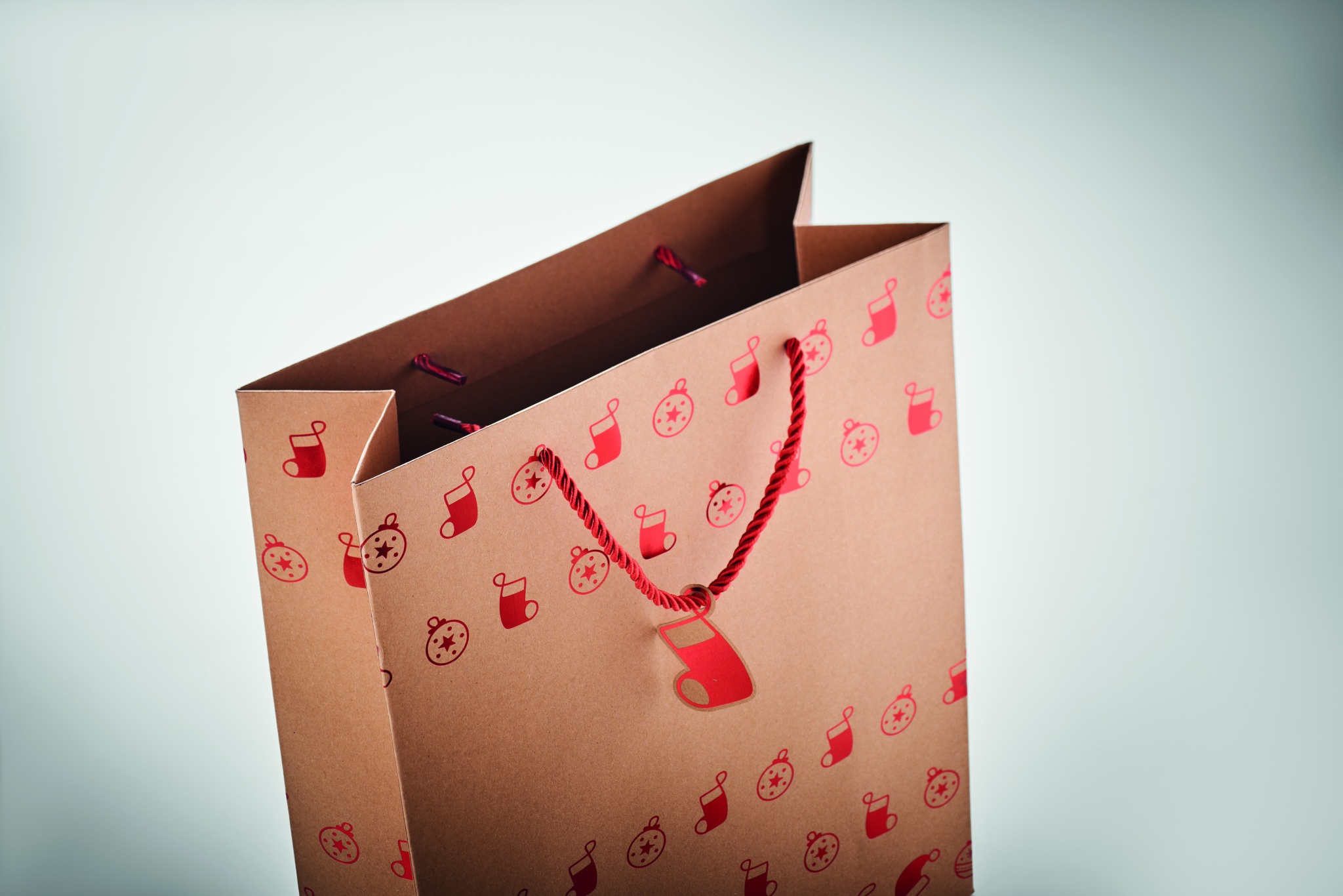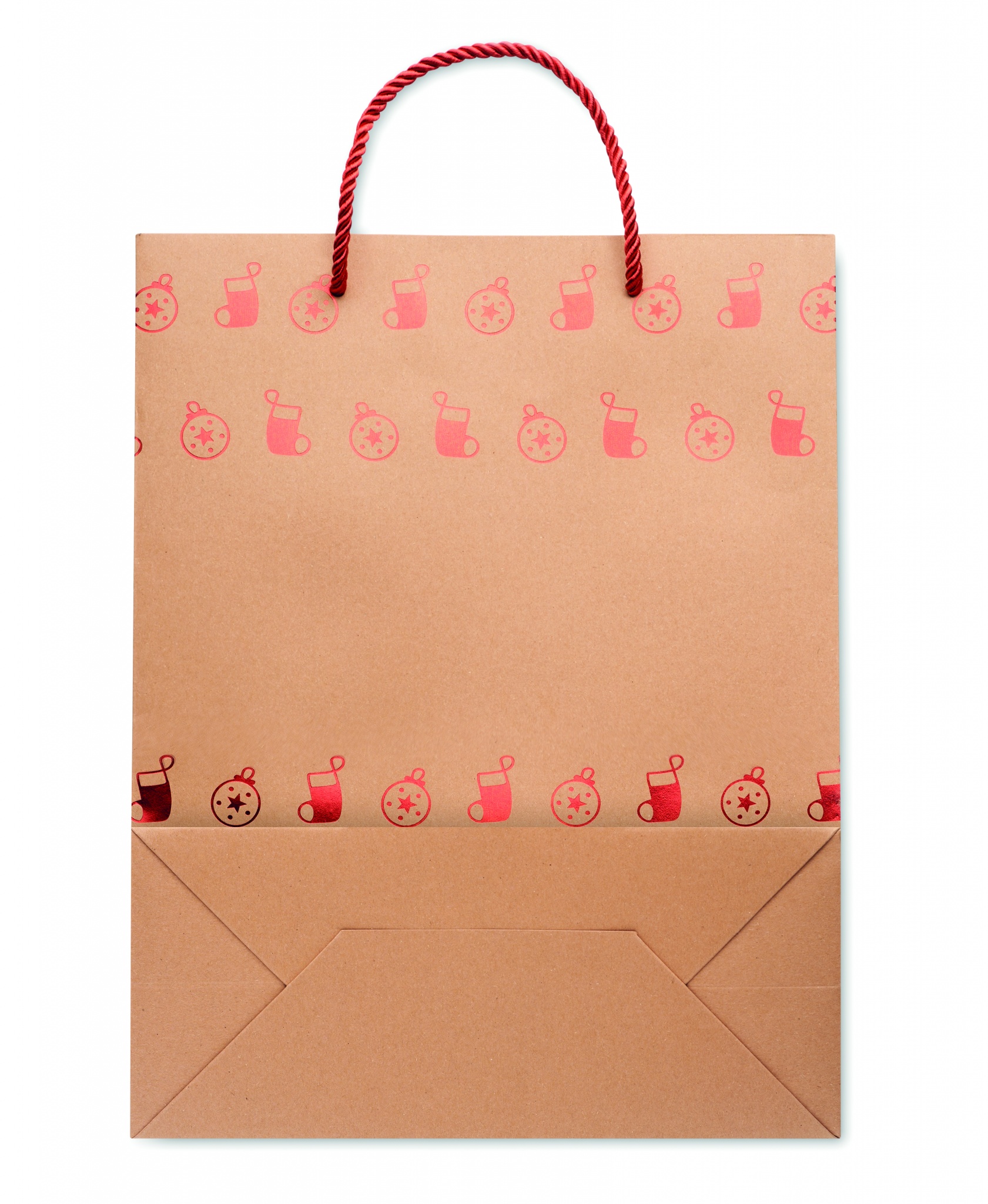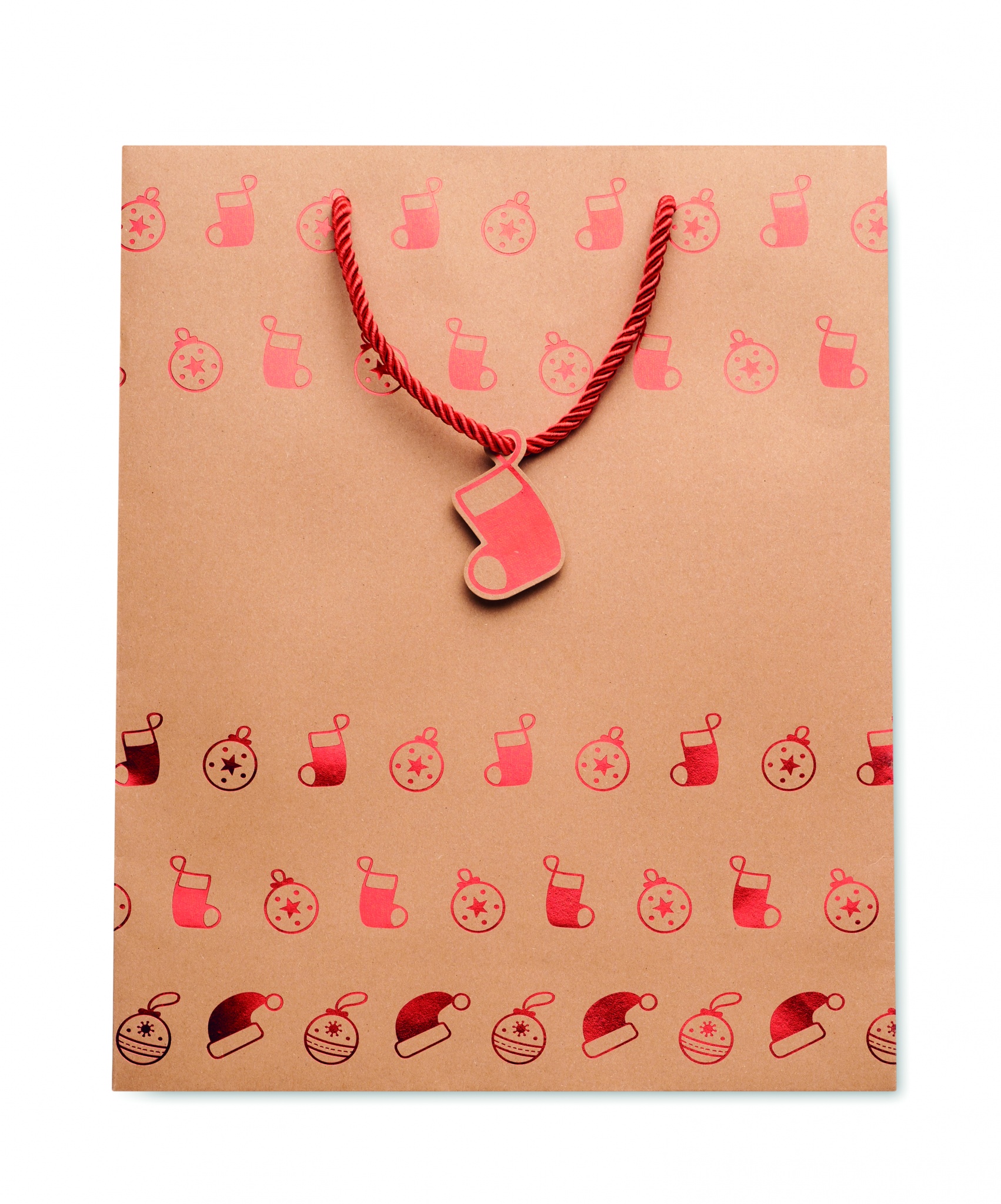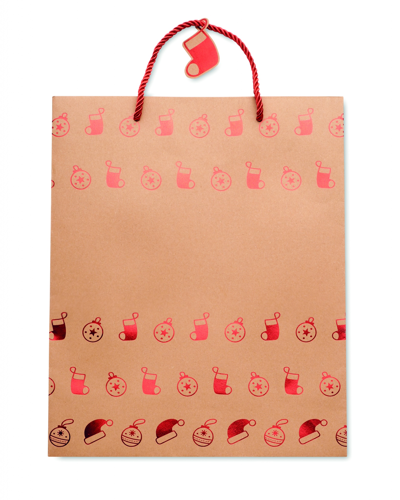 Elegantne hooajalise mustriga jõupaberist kingikott. Kaasas kingitussilt. 250 gr/m².