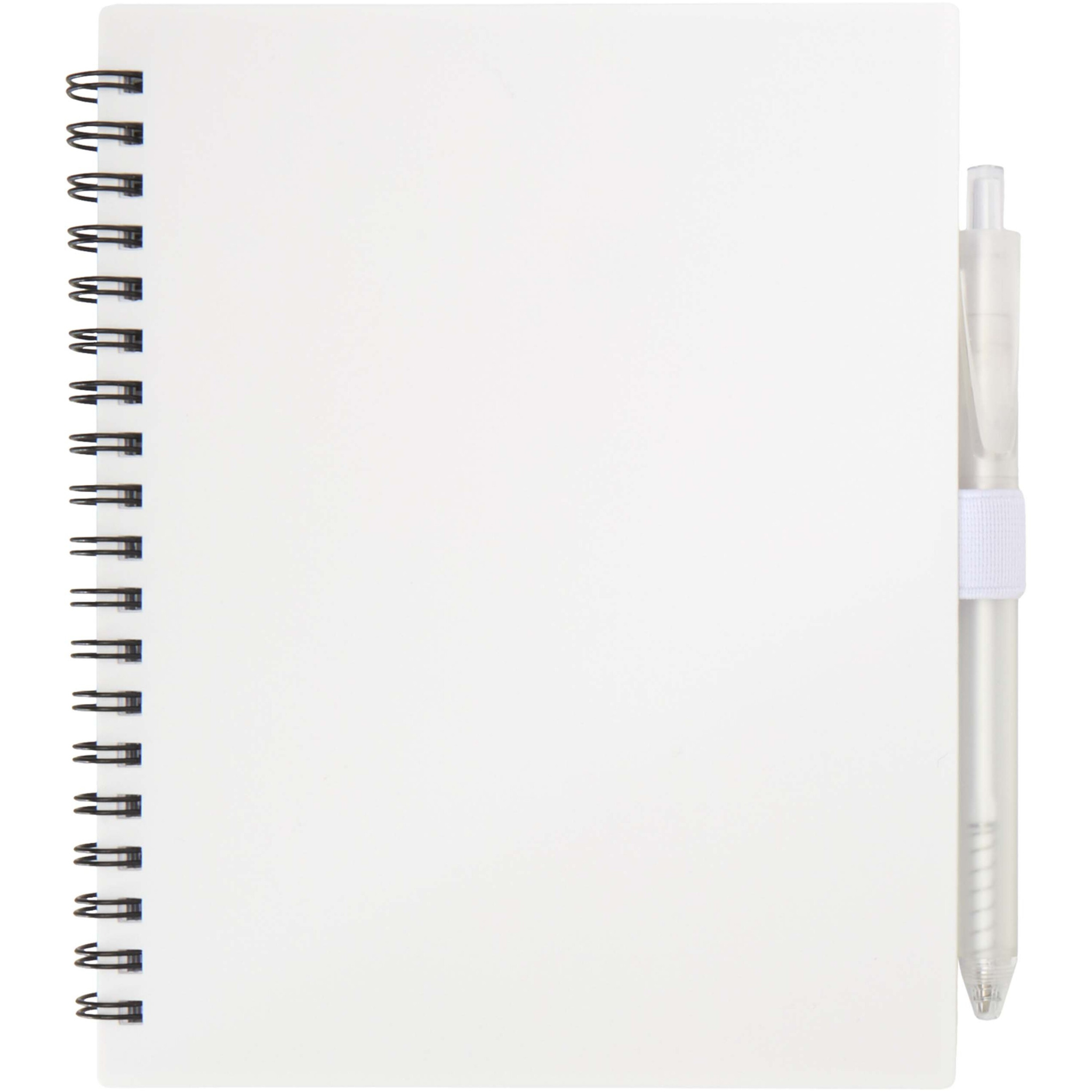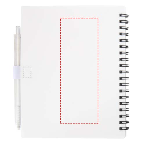 Niove pehmekaaneline märkmik on valmistatud taaskasutatud plastist ja sisaldab 70 punktiirjoontega lehte (70 g/m² paberit). Märkmikul on pliiatsiaas. Märkmiku suurus: 140 x 178 mm. Pastapliiats on samuti valmistatud taaskasutatud plastist. Tindi värv: sinine. Kirjutuspikkus: 1000 meetrit. Otsa suurus: 1,0 mm.