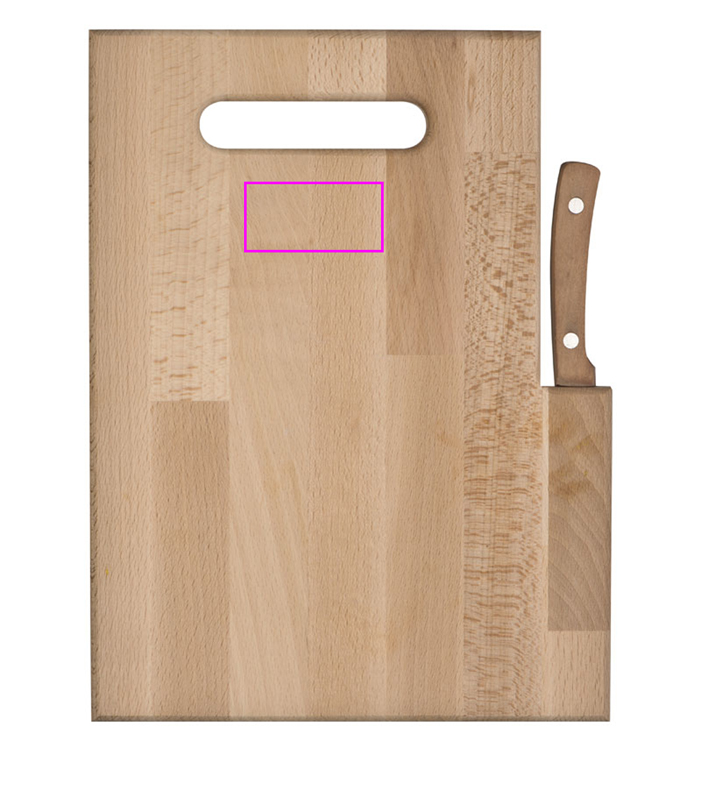 Suurepärane duo! Pöögipuust puitplaat integreeritud noaga. Kanname teie logo tahvlile lasergraveerimisega.